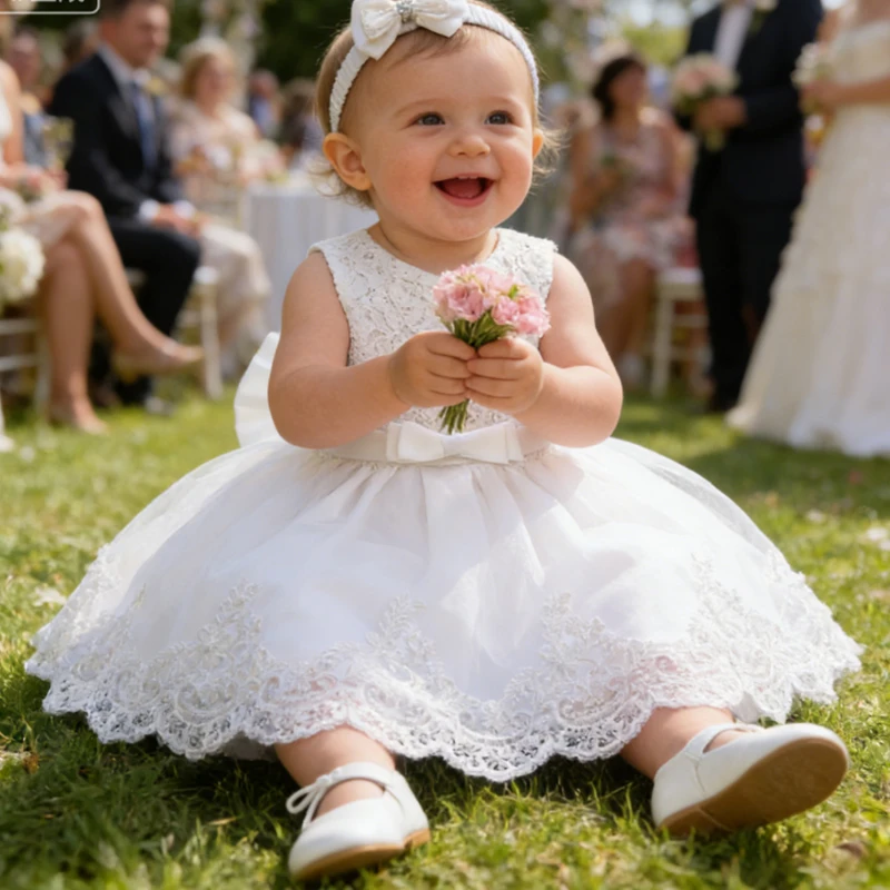 Newborn Baby Girls White Princess Christmas Dress Kids Dresses For Girls Baptism 1st Birthday Wedding Bridesmaid Infant Vestidos