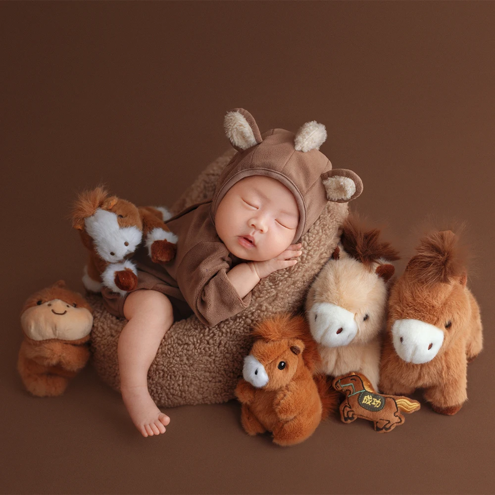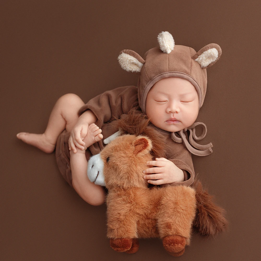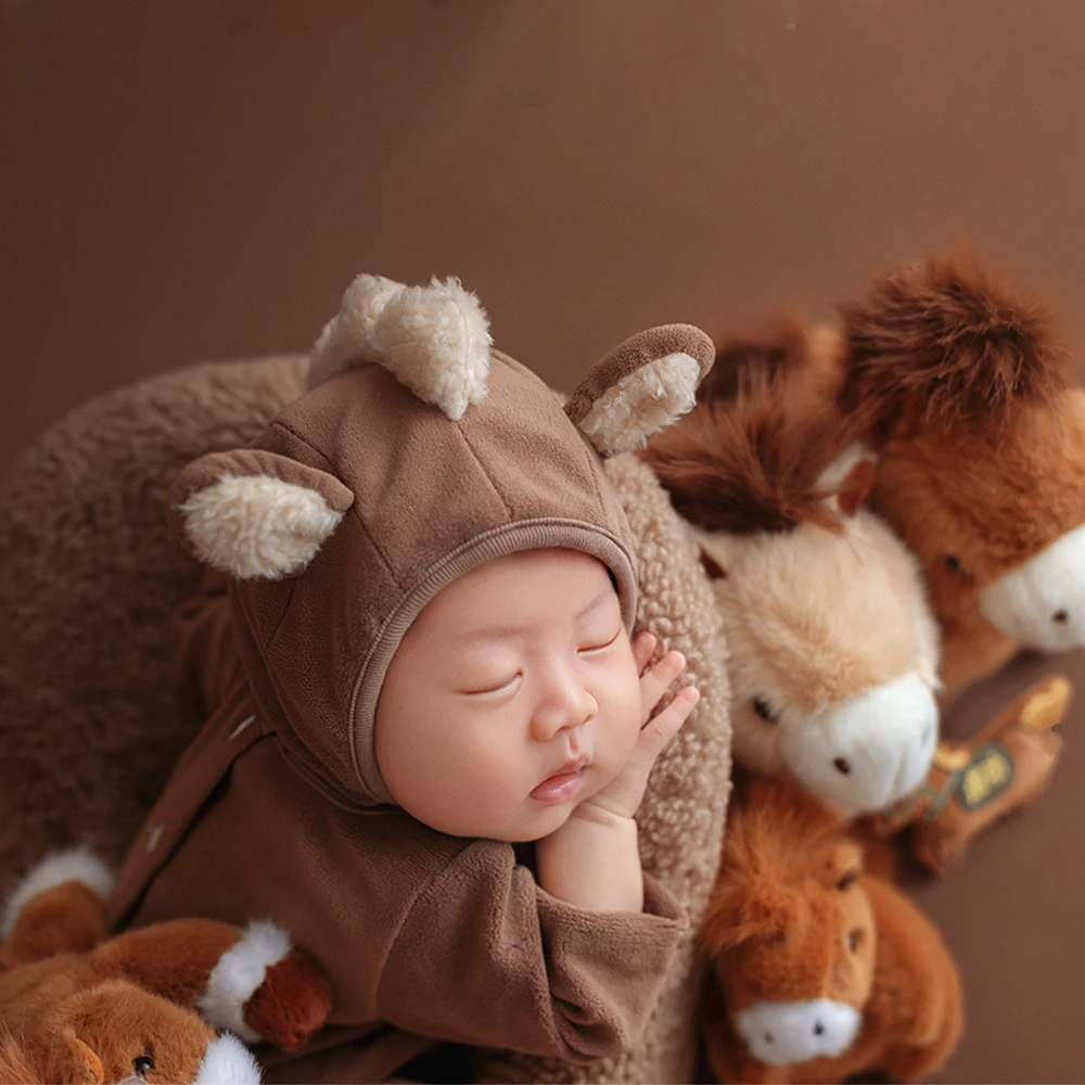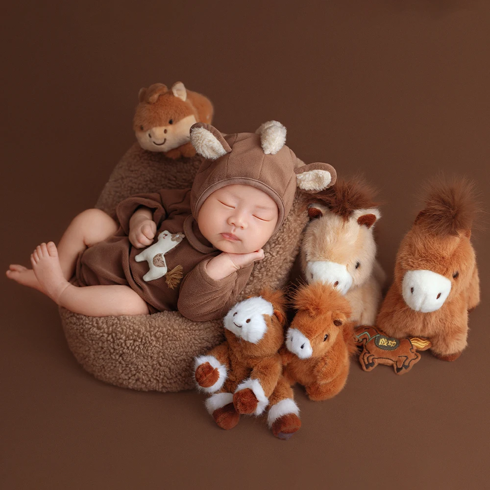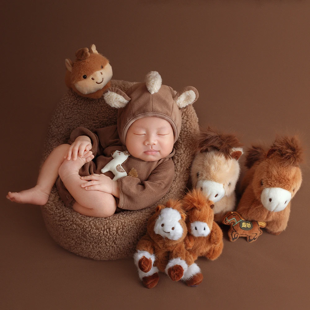 Professional Newborn Photography Props Horse Theme Baby Jumpsuit+hat Cute Little Pony Dolls Studio 0-1 Month Baby Shooting Props