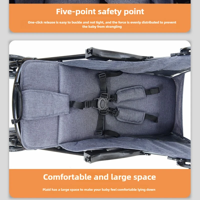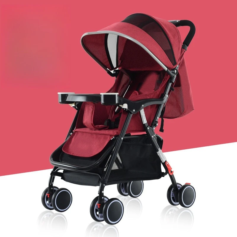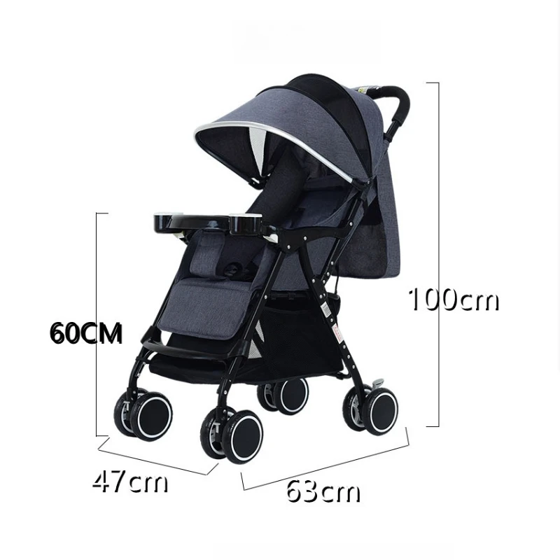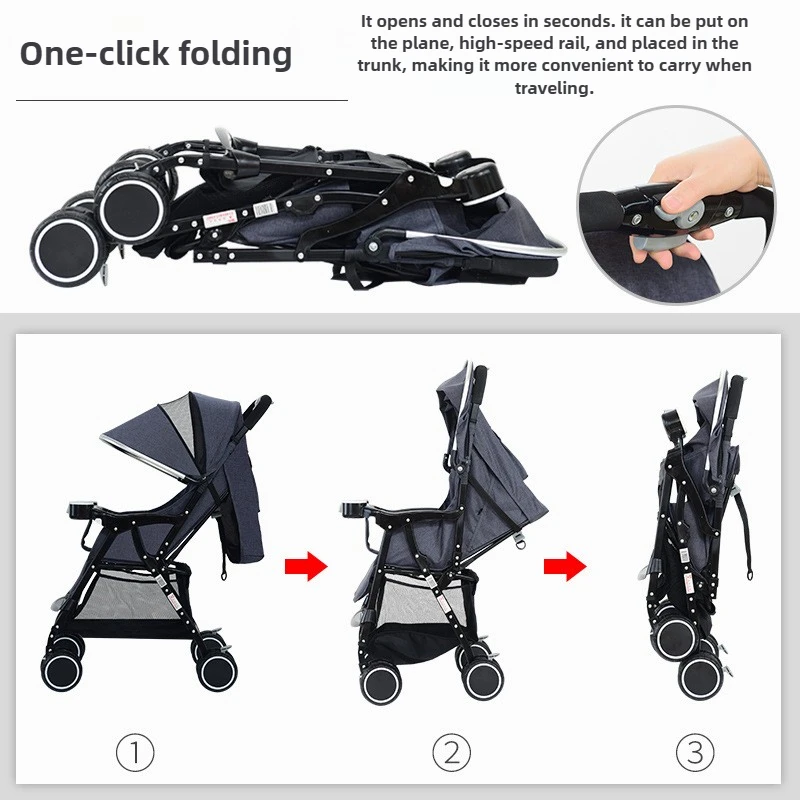 Lightweight Baby Stroller One-handed One-button Folding, Portable Stroller for Sitting or Lying Heavy-duty and Shock-resistant