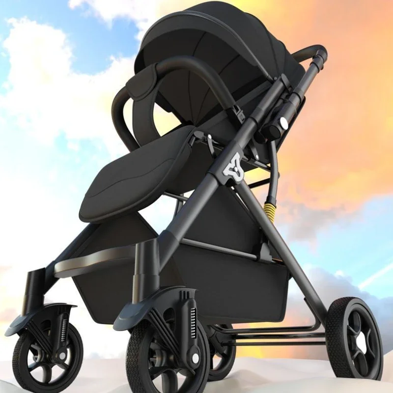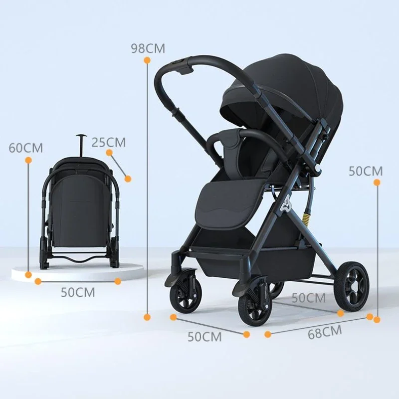 Ultra-light Four-wheel Baby Stroller Can Sit or Lie Down High-view Simple Baby Stroller Two-way Foldable Children's Stroller