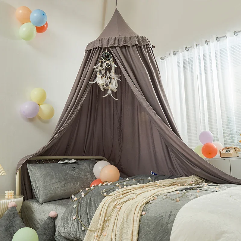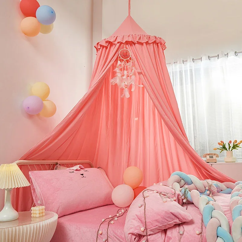 Pink Grey White Kids Tent Baby Bed Crib Canopy Curtain Round Hung Dome Mosquito Net for Baby Bedroom Decoration Child Play Tent