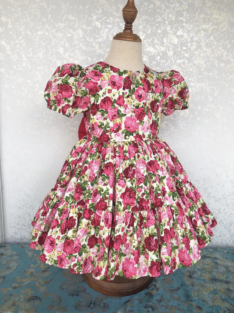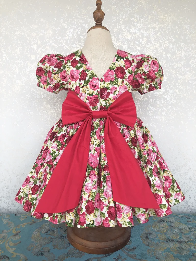 0-12Y Girl Summer Red Rose Floral Turkish Vintage Princess Dress for Easter Eid Birthday Photography B492