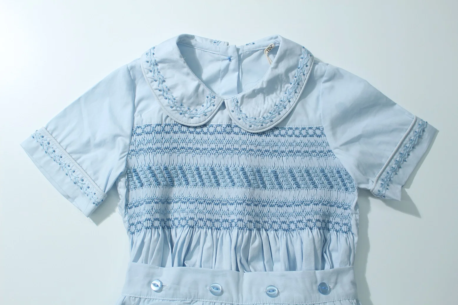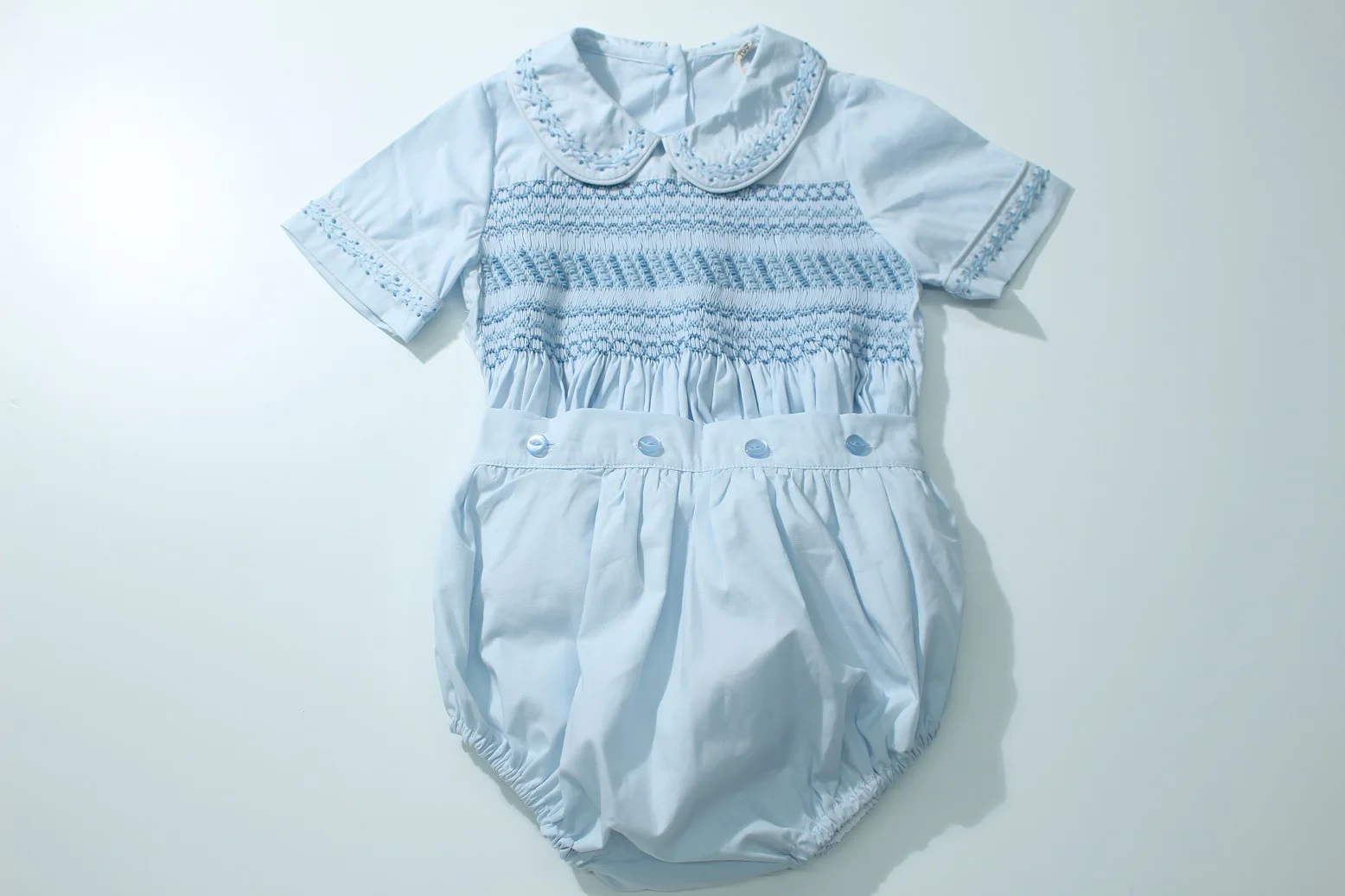 0-6Y Baby Boy Summer Light Blue Smocked Outfit Suit for Birthday Hoiday Casual A103