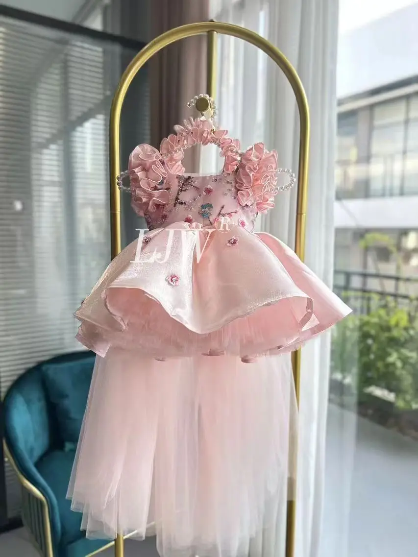 1-12Y girl short sleeve elegant flower girl dress first communion birthday wedding children's girl beauty pageant princess gown