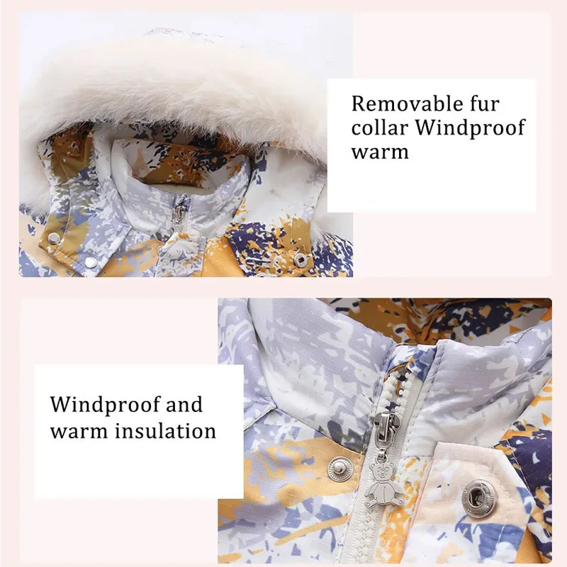 2025 Winter Children Hooded Romper -30 Degree Camouflage Printed Lightweight Snowsuit Ski Suit Windproof Jumpsuit Outwear Boys