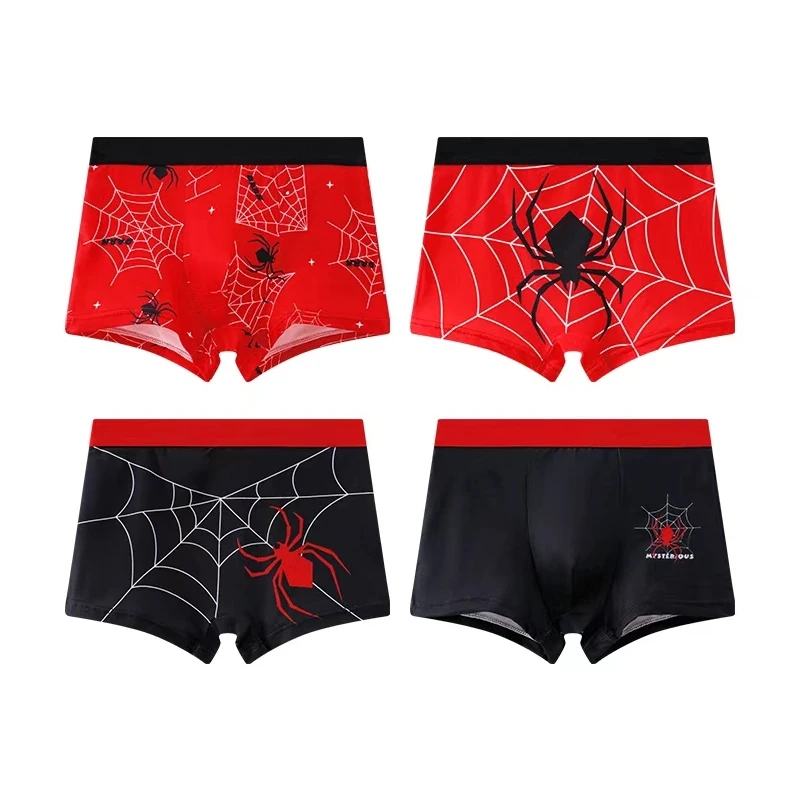 4/5pcs Kids Knitted Fun Spider Print Boxer Shorts Comfortable Skin-Friendly Fabric Suitable for All Seasons Boys Underwear