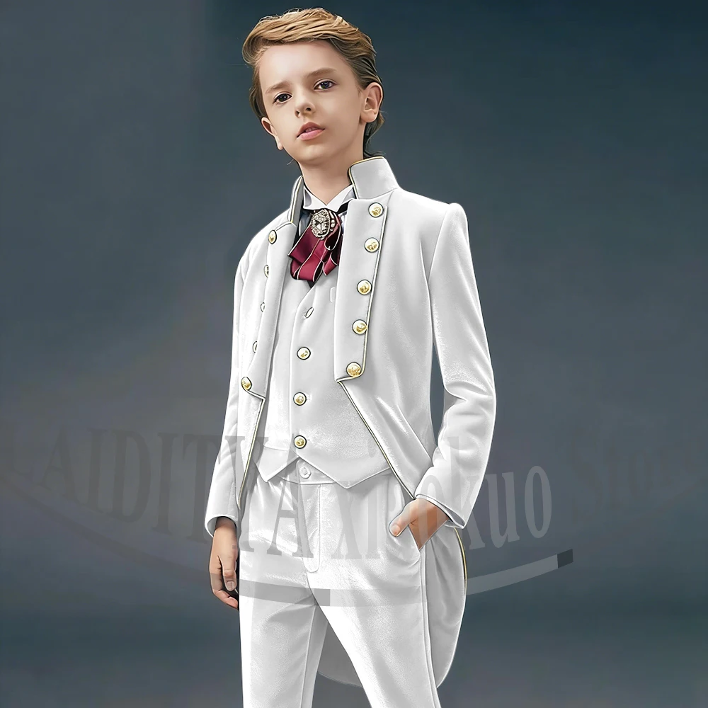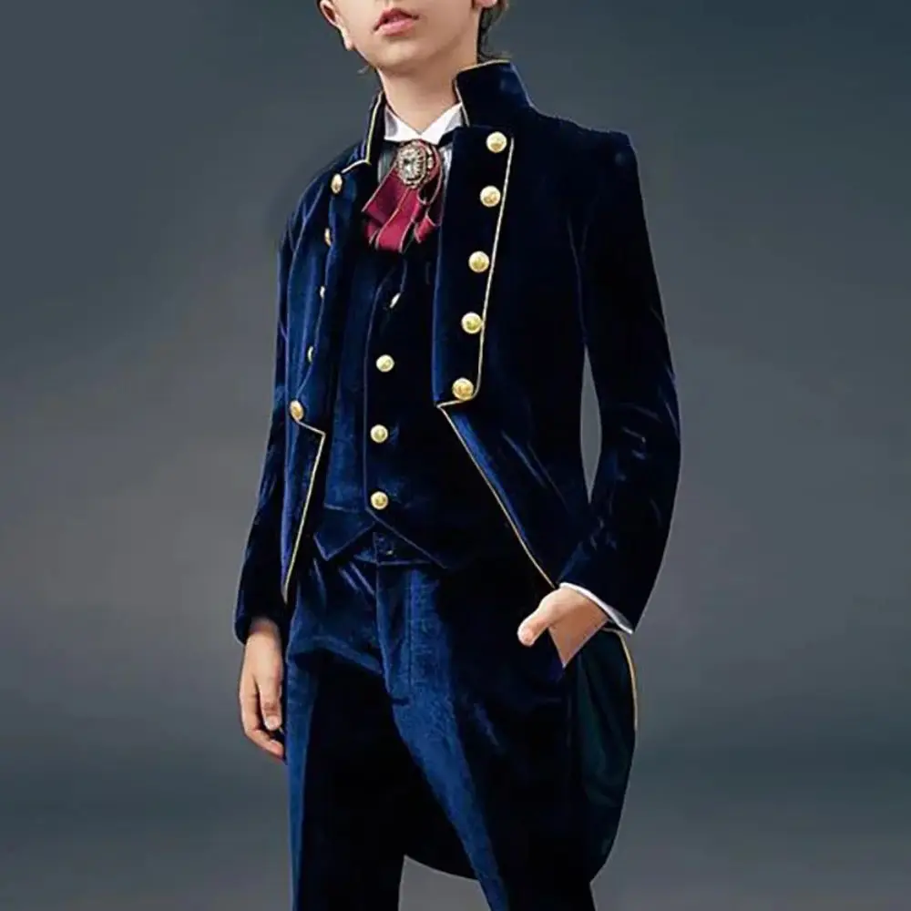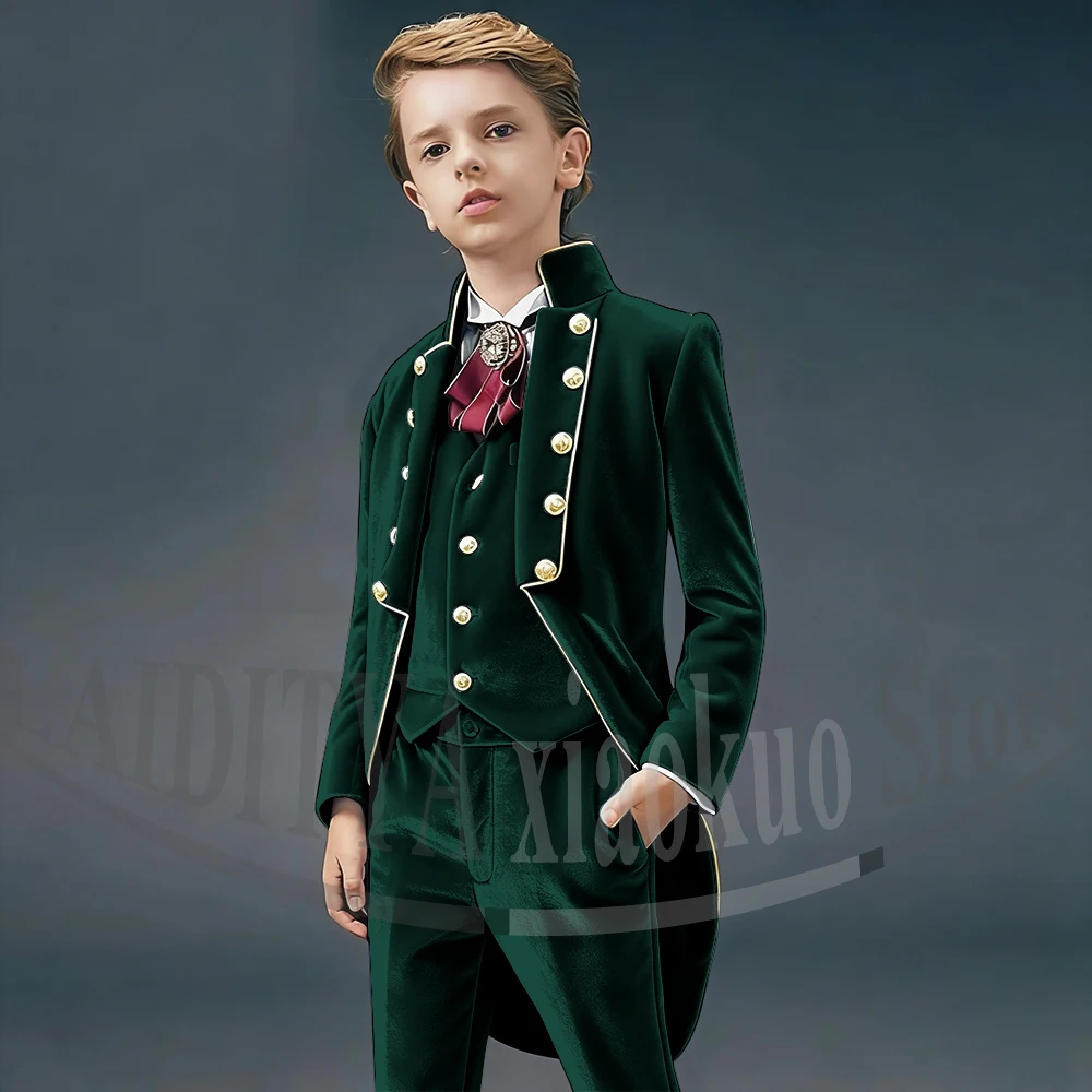 Chic Velvet Boys Suits Stand Collar Party Wedding Children Tailcoats Fashion Banquet Prom Formal Customized Kids Clothes 3 Piece