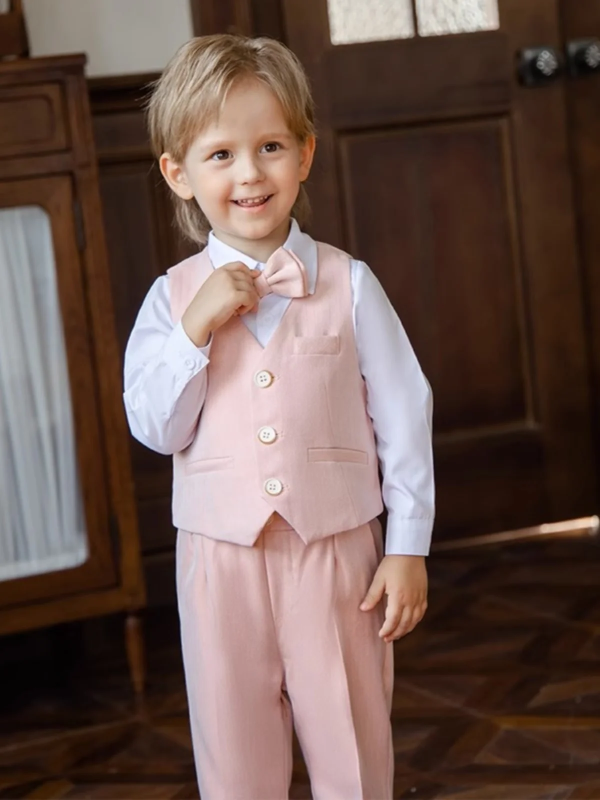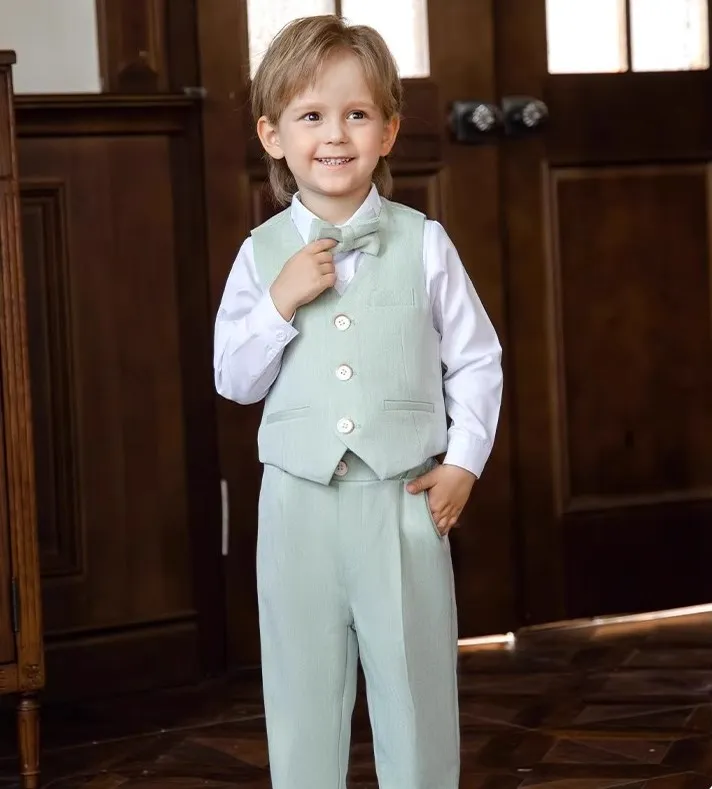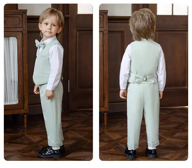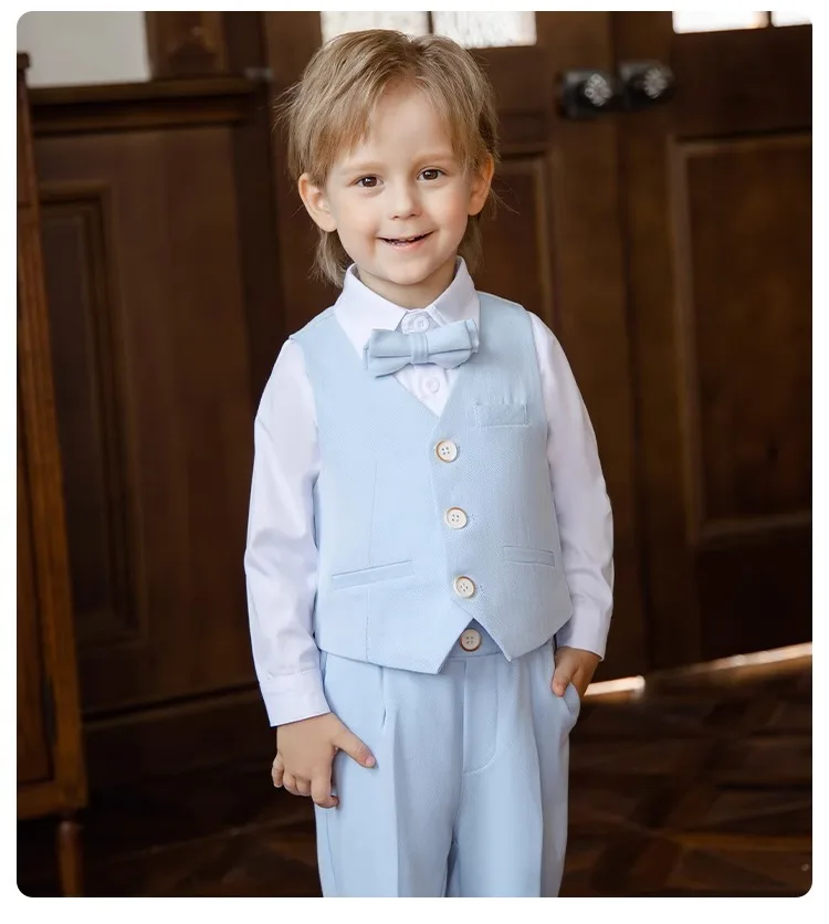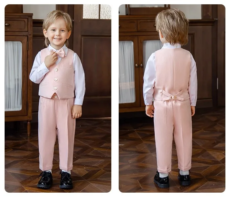 Children Vest Pants Bowtie Photography Suit Kids Birthday Wedding Party Dress Performance Tuxedo Set Boys Girls Ceremony Costume