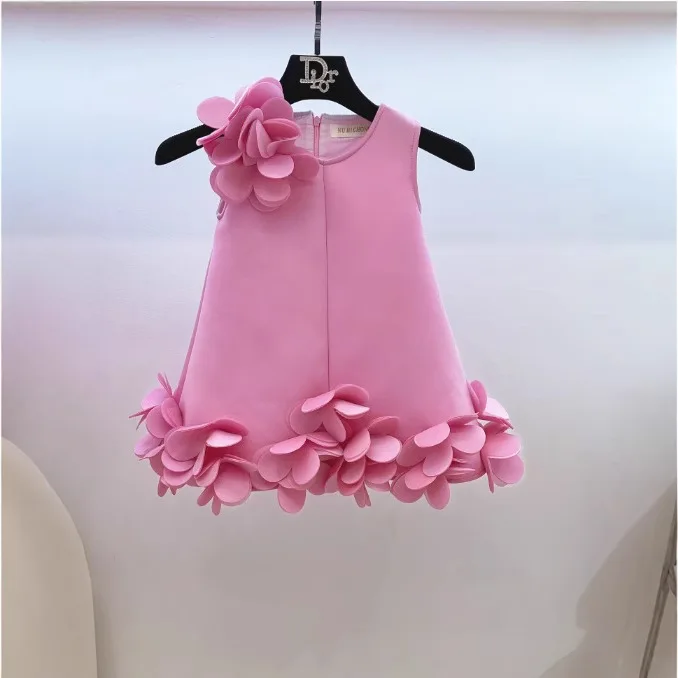 Children's Dress 3D Flower Cute Little Girl Vest Style Princess Dress Sweet Party Dress Flower Girl Dresses Girls Clothes