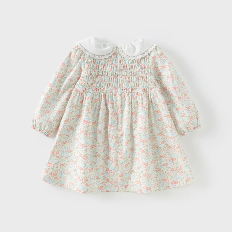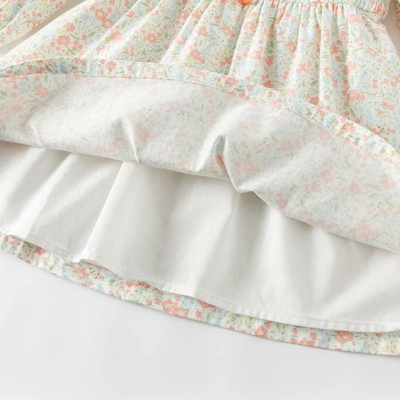 [Dave Bella Girls' Floral Print Long Sleeve Autumn Spring Dress Children Cute Winter Bottom Dress Casual Party Clothes DB1250439