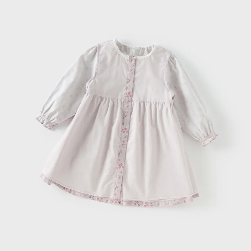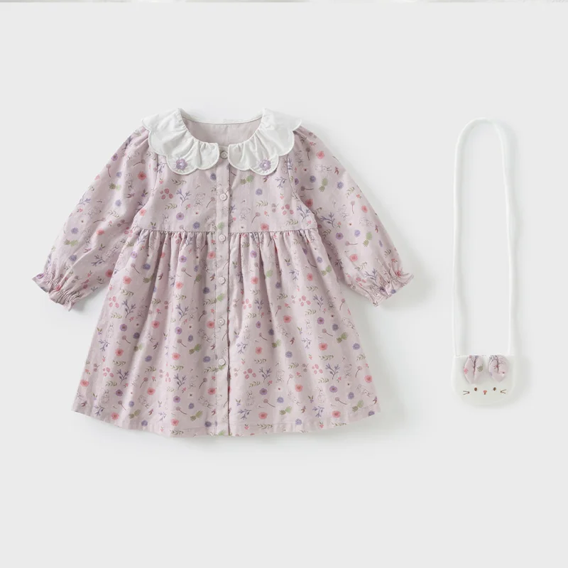 Dave Bella Girls Long Sleeve Princess Dress Spring Autumn Cotton Floral Print Dress Children Party Outdoor Clothes DB1250321