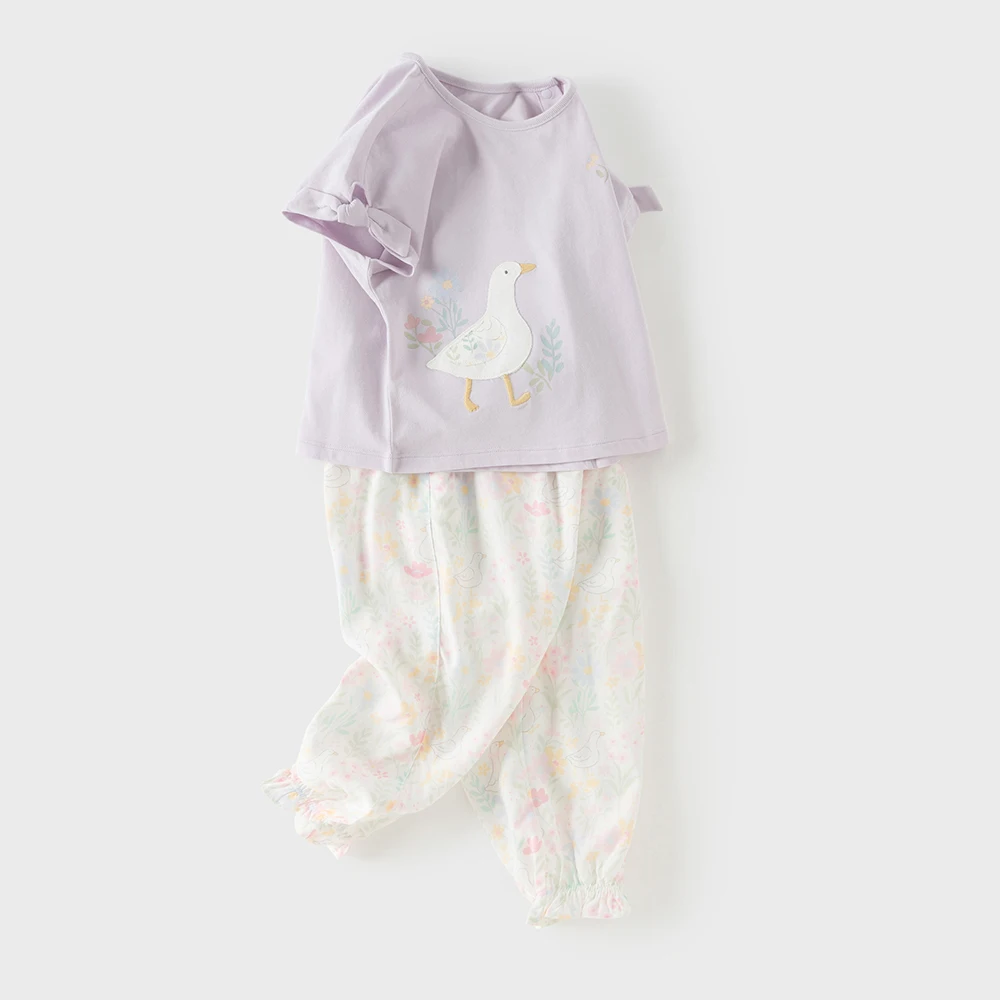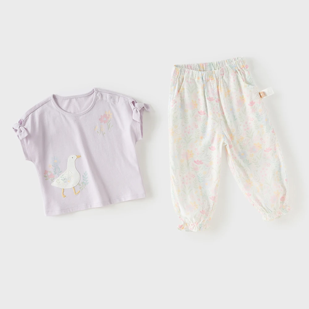 Dave Bella Girls Summer 2PCS Set Short Sleeve T-shirt Flower Pants Suits Childern Printed Tops Trouser Clothing Sets DB2262095