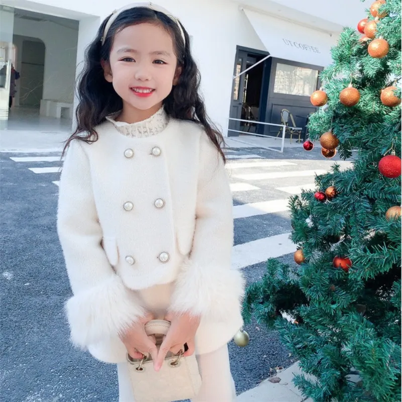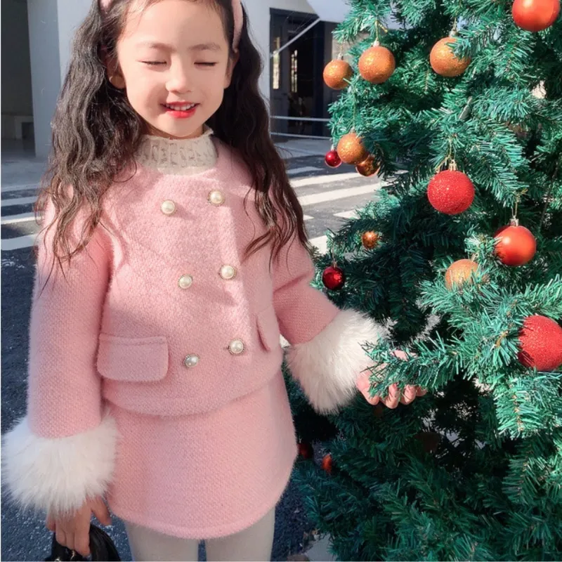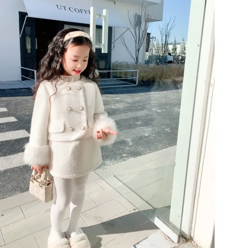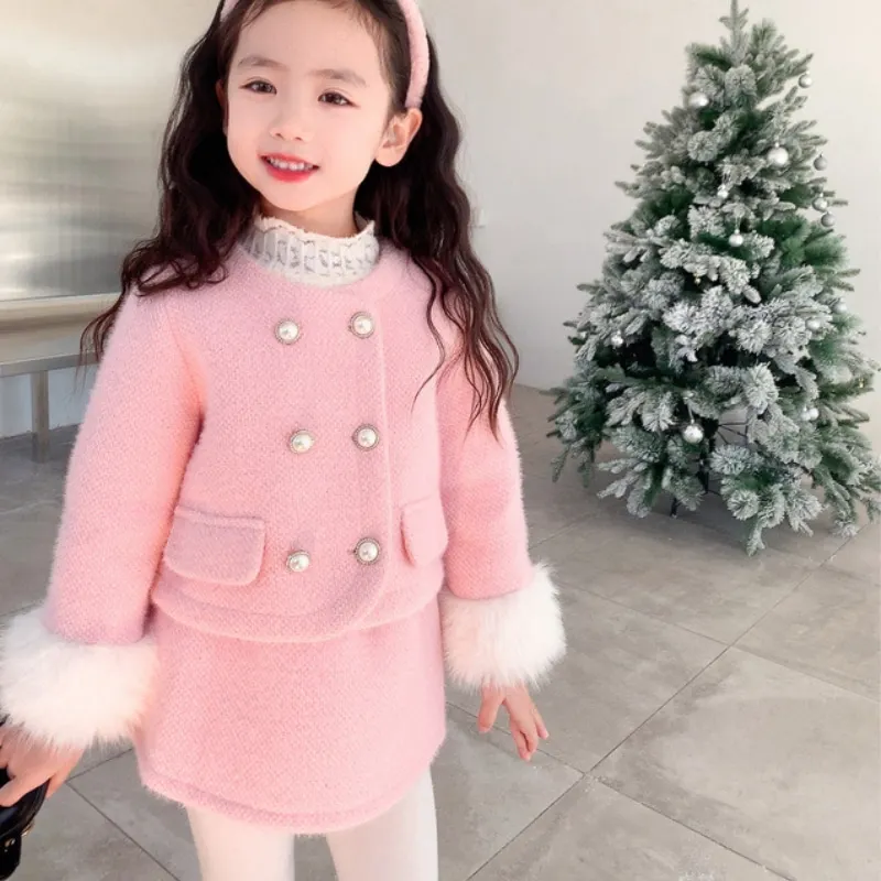 Fashion Baby Girl Princess Cotton Clothing Set Long Sleeve Fur Jacket+Skirt 2PCS Infant Toddler Child Elegant Baby Clothes 1-14Y