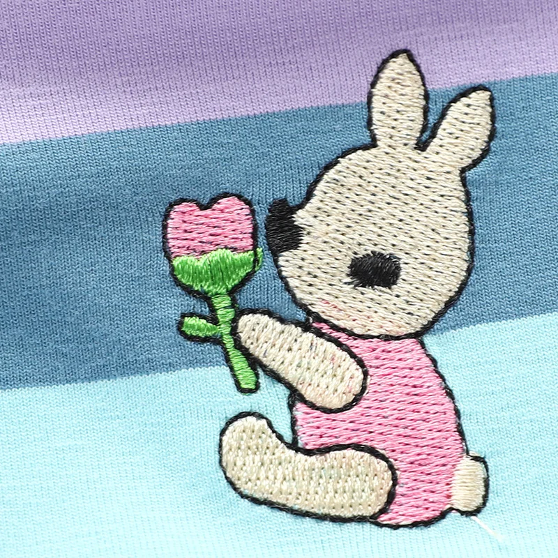 Girl's Summer fashion cute short sleeve cartoon rabbit embroidered rainbow strip baby girl princess dress
