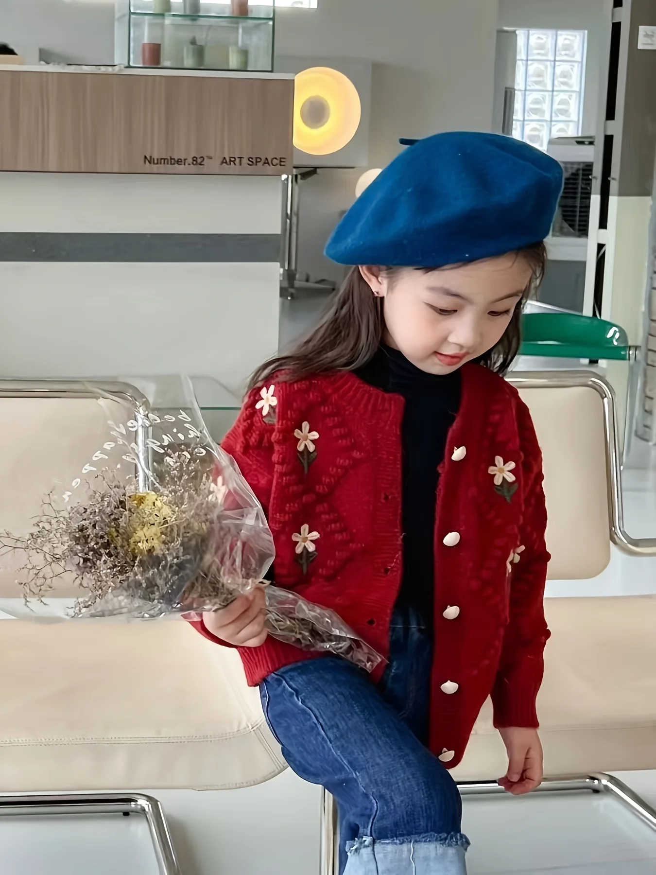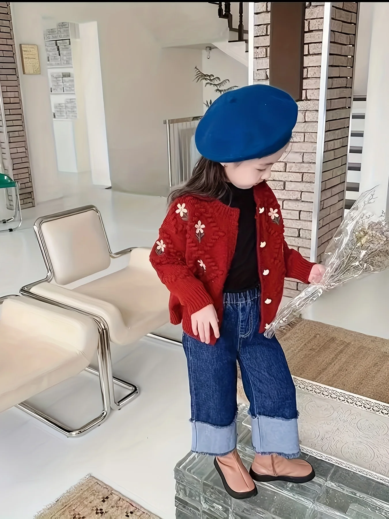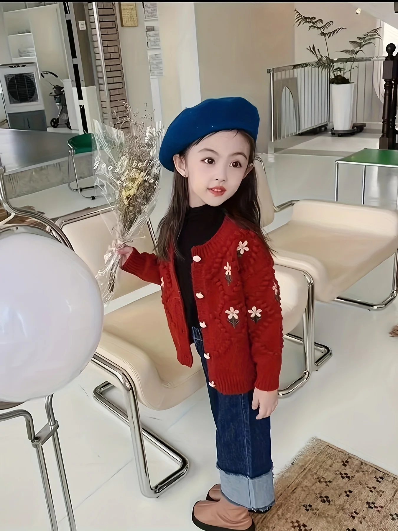 Girls' Sweater Cardigan Spring and Autumn New Fashionable Korean Style Children's Easiest for Match Embroidered Flower Knitted Jacket Trendy for Big Children