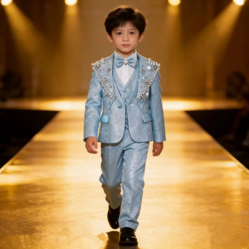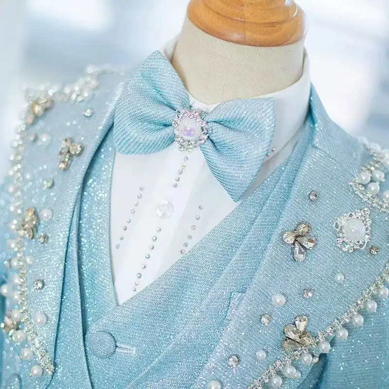 High Quality Children Tuxedo Suit Custom Logo Size Slim Fit Boys Wedding Suit 5-Pieces Suit A3742