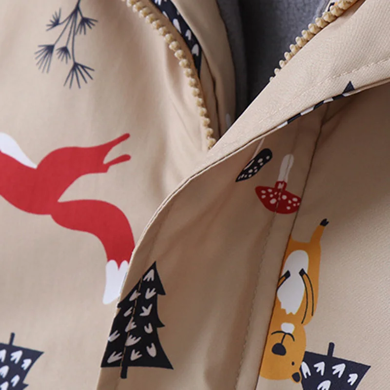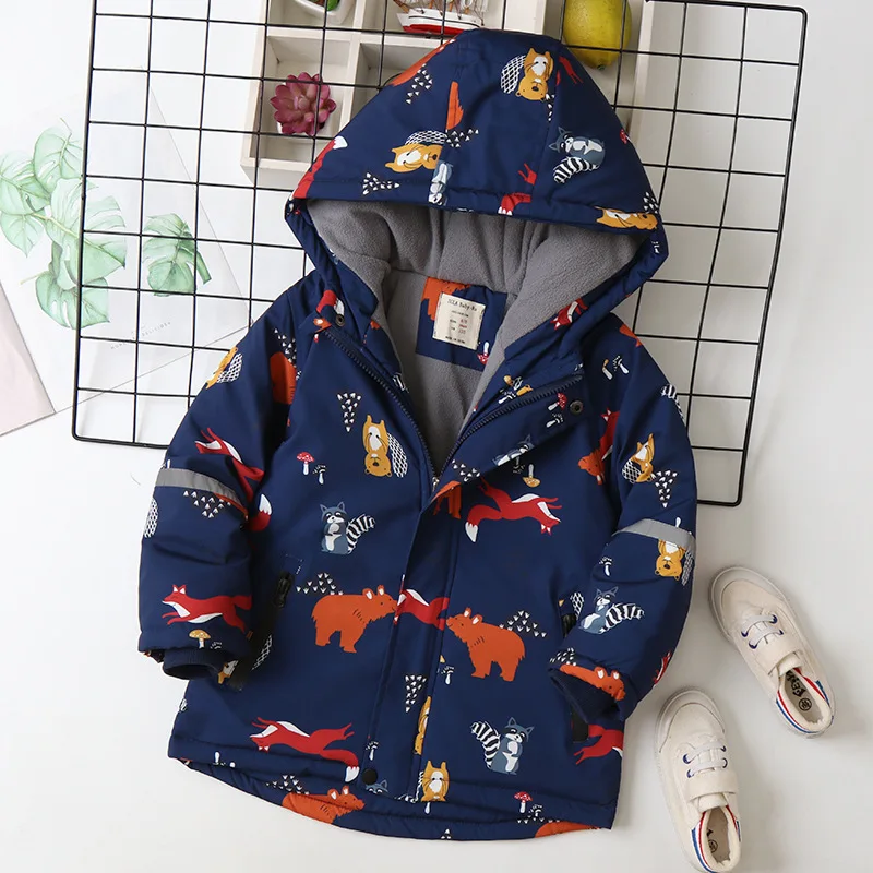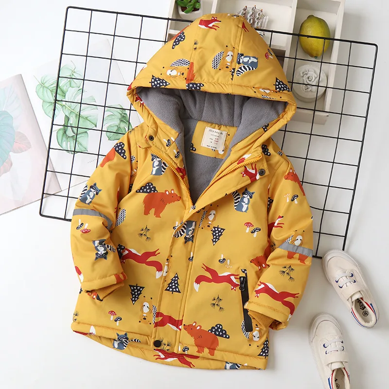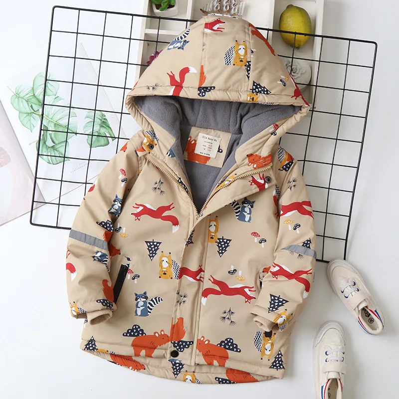 IYEAL Children's Coat Animals Printed Kids Clothes Cotton Padded Warm Velvet Windproof Hooded Jacket Boys Baby Thickened Outwear