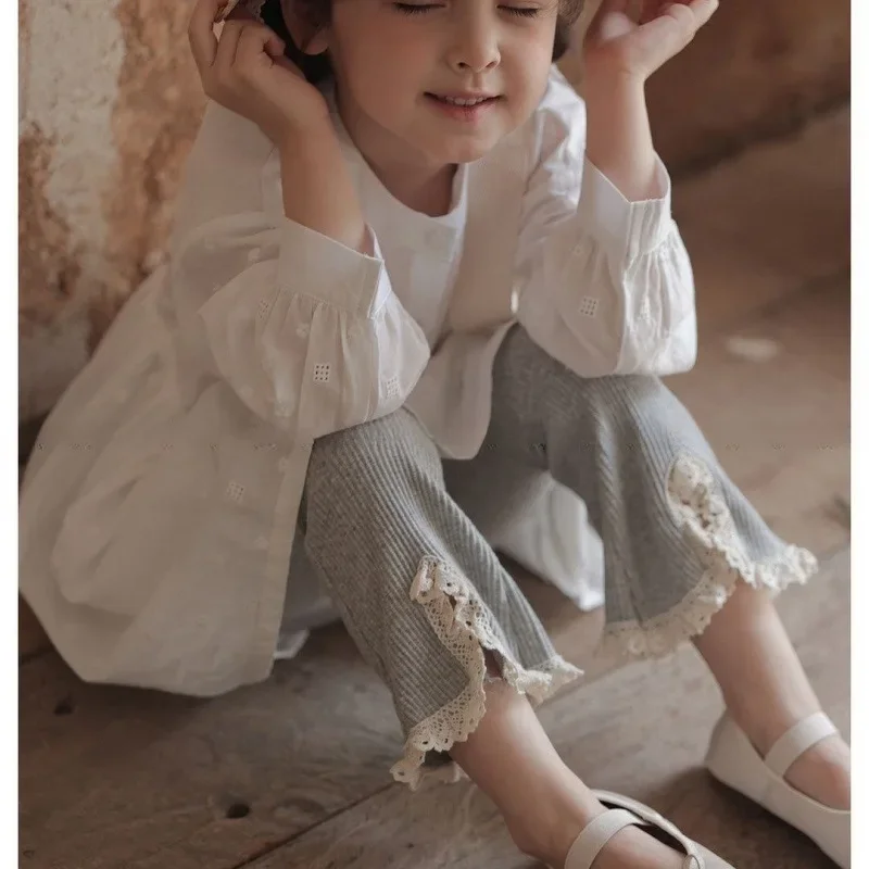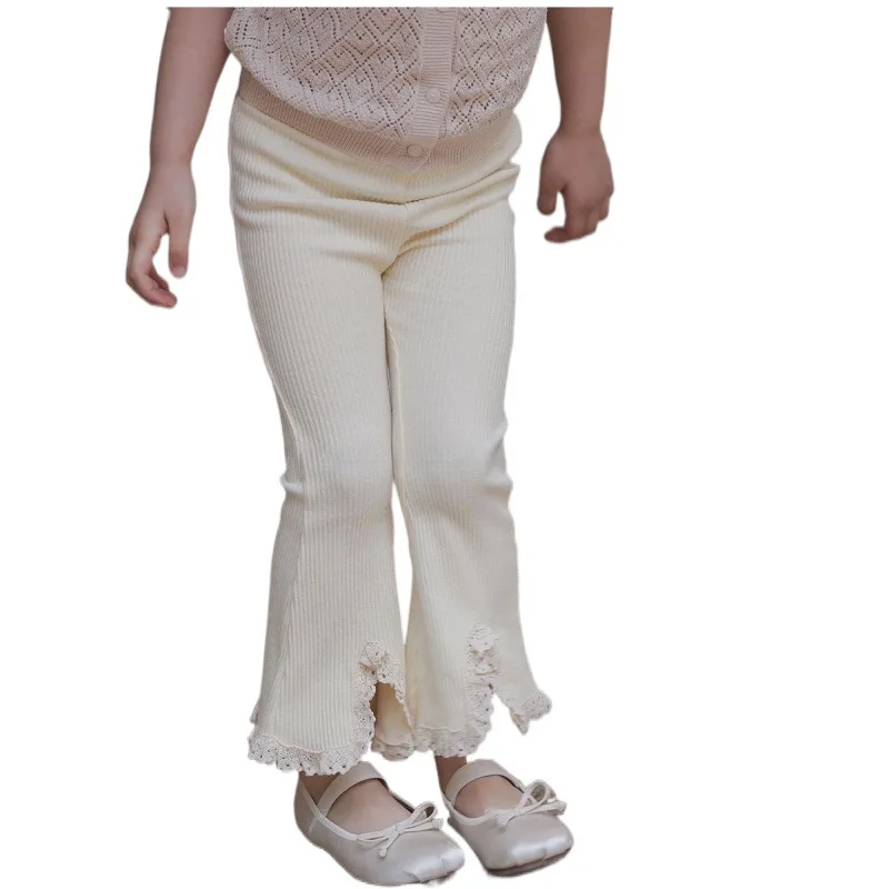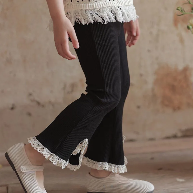 Little Girl's Flared Pants for Spring and Autumn New Fashionable Girls Clothing Korean Version Solid Color Lace Split Trousers