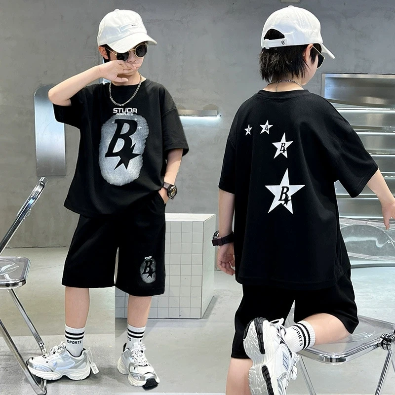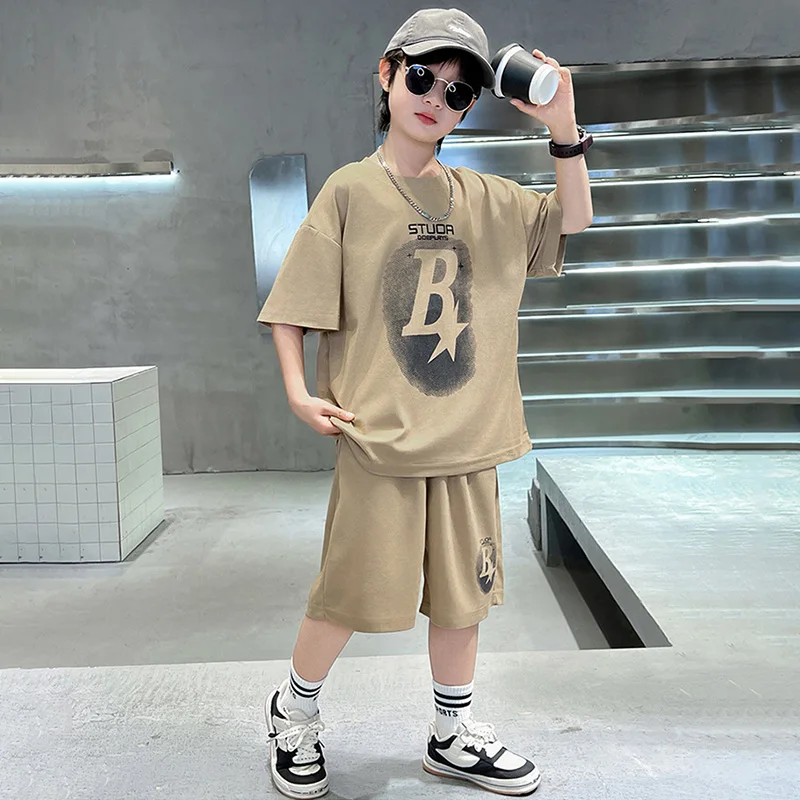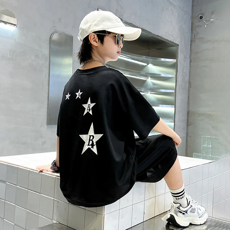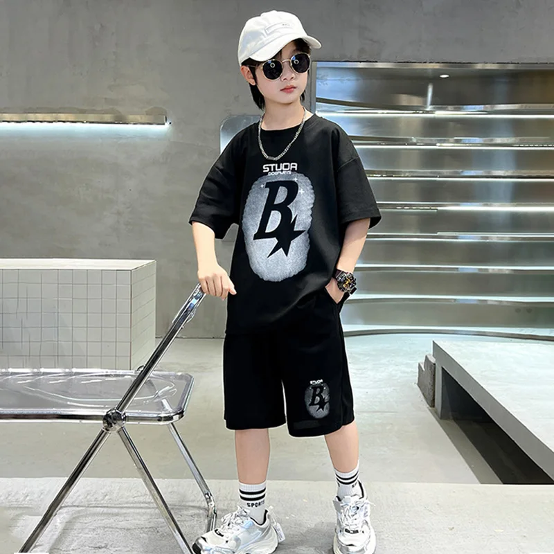 New Summer Teenager Boys Clothing Set Cotton Letter Short Sleeve T-shirt Shorts 2Pcs For 4-14 Years Kids Tracksuits Child Cloth