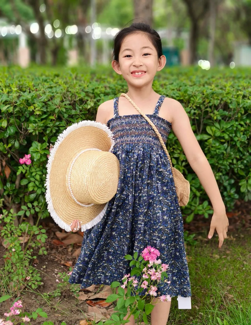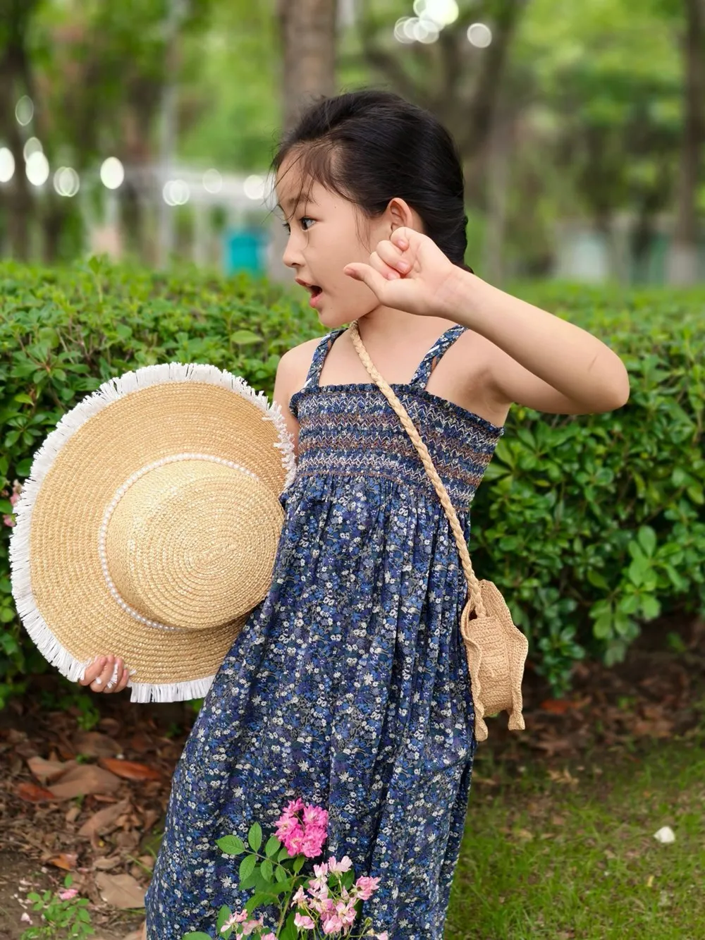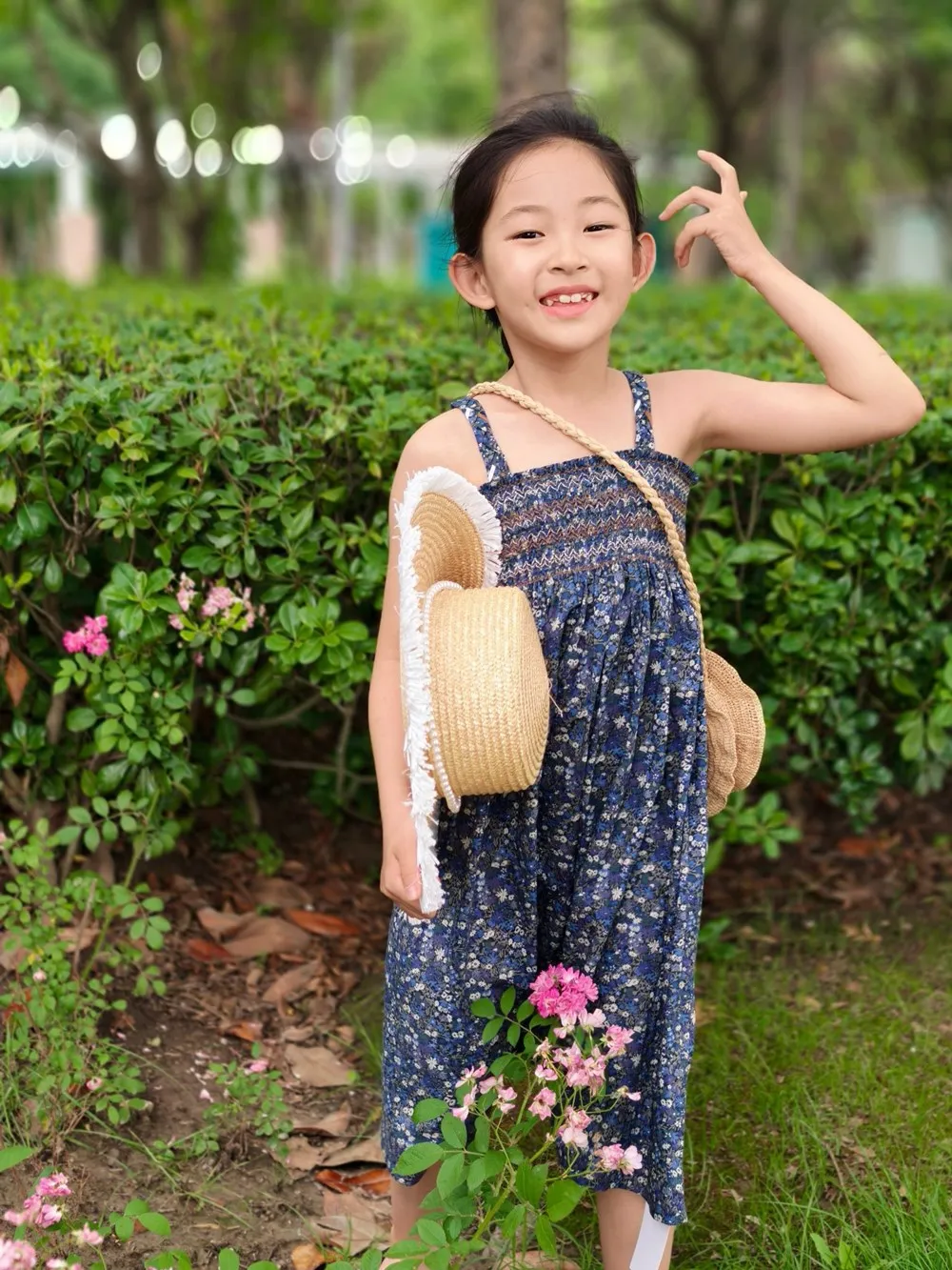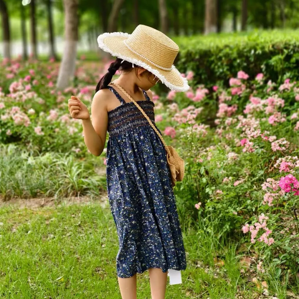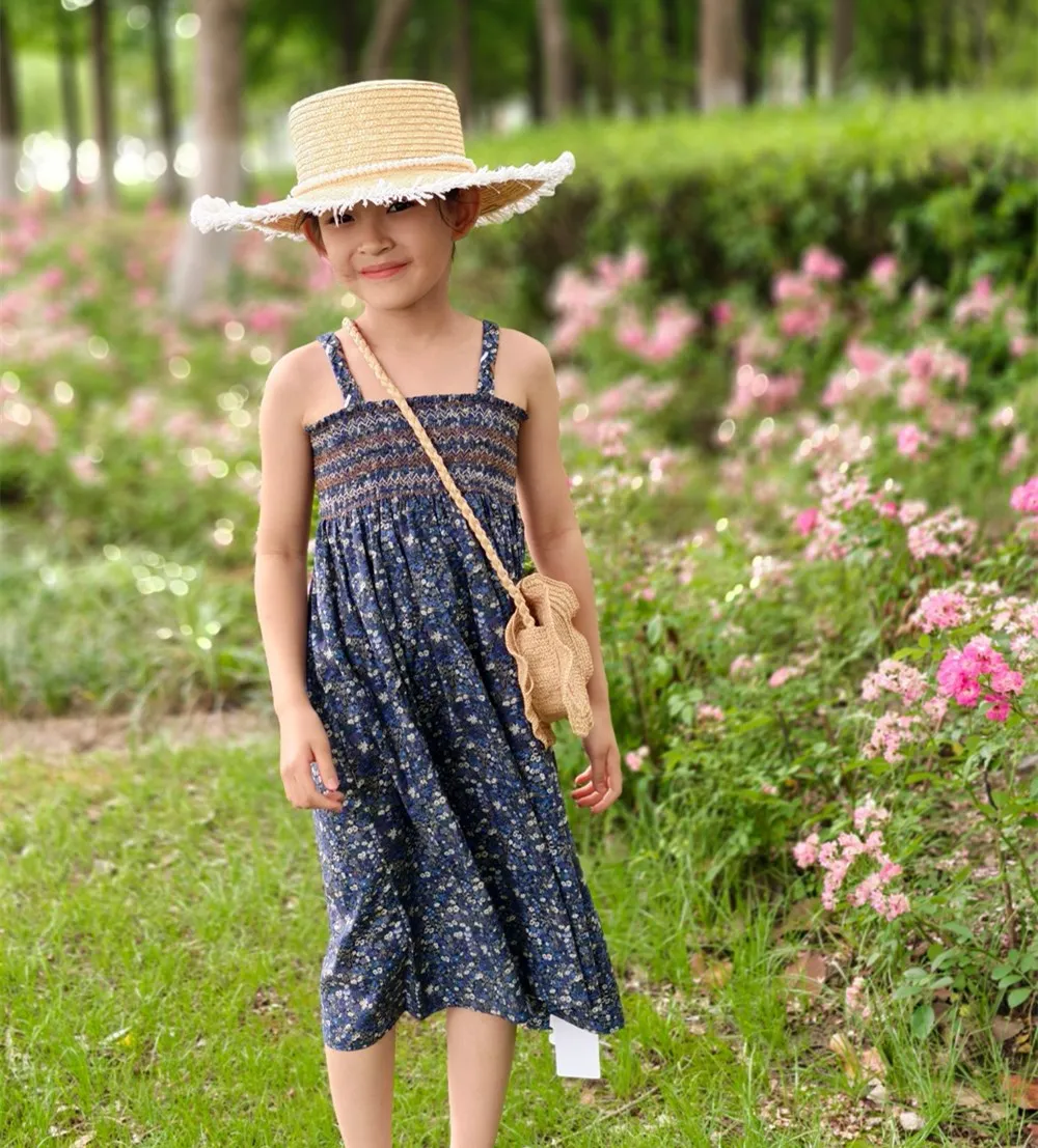 Summer dress kids girl clothes French style hand embroidered sleeveless dress Vacation style retro printed camisole dress