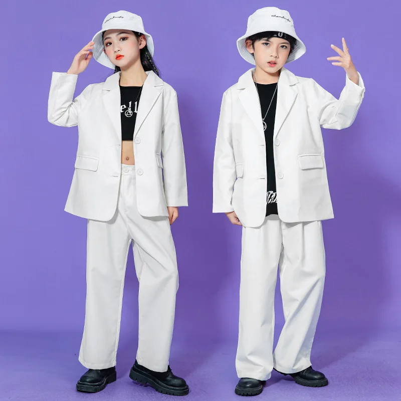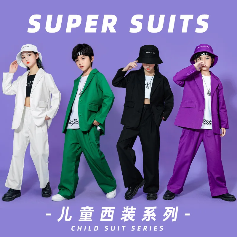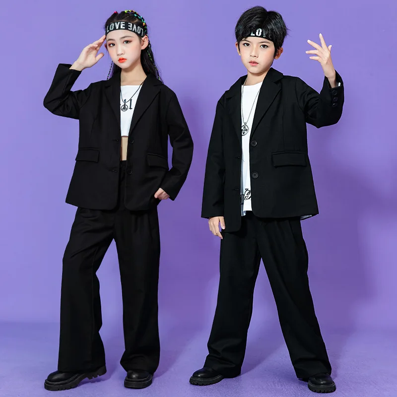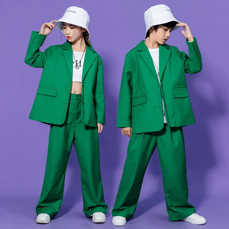 Teen Boys Girls Hip Hop Dance Suit Set Trend Red Performance Blazer Pants 2-piece School Kids Jazz Show Costume Child Streetwear