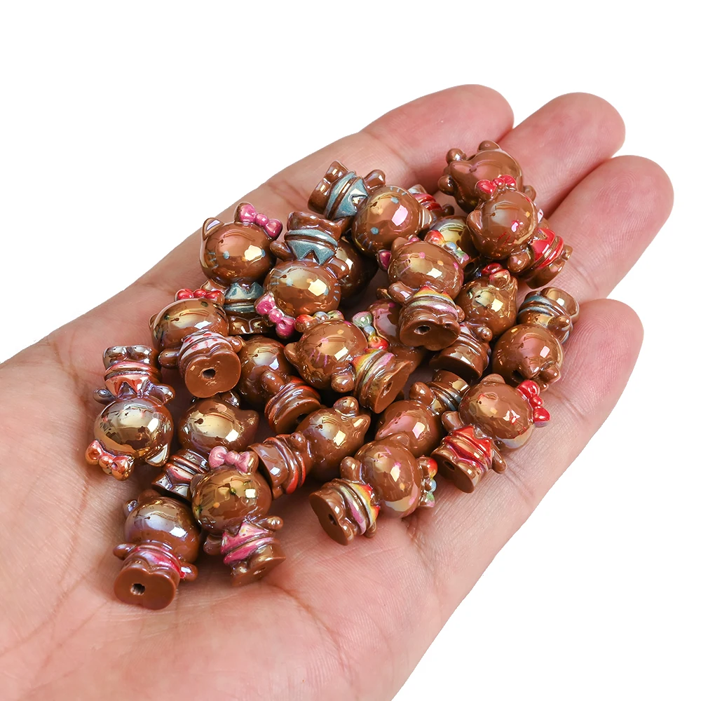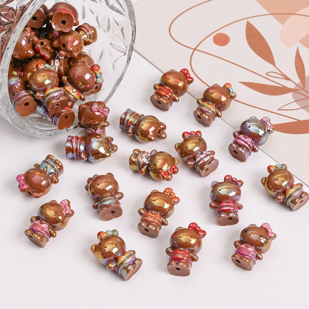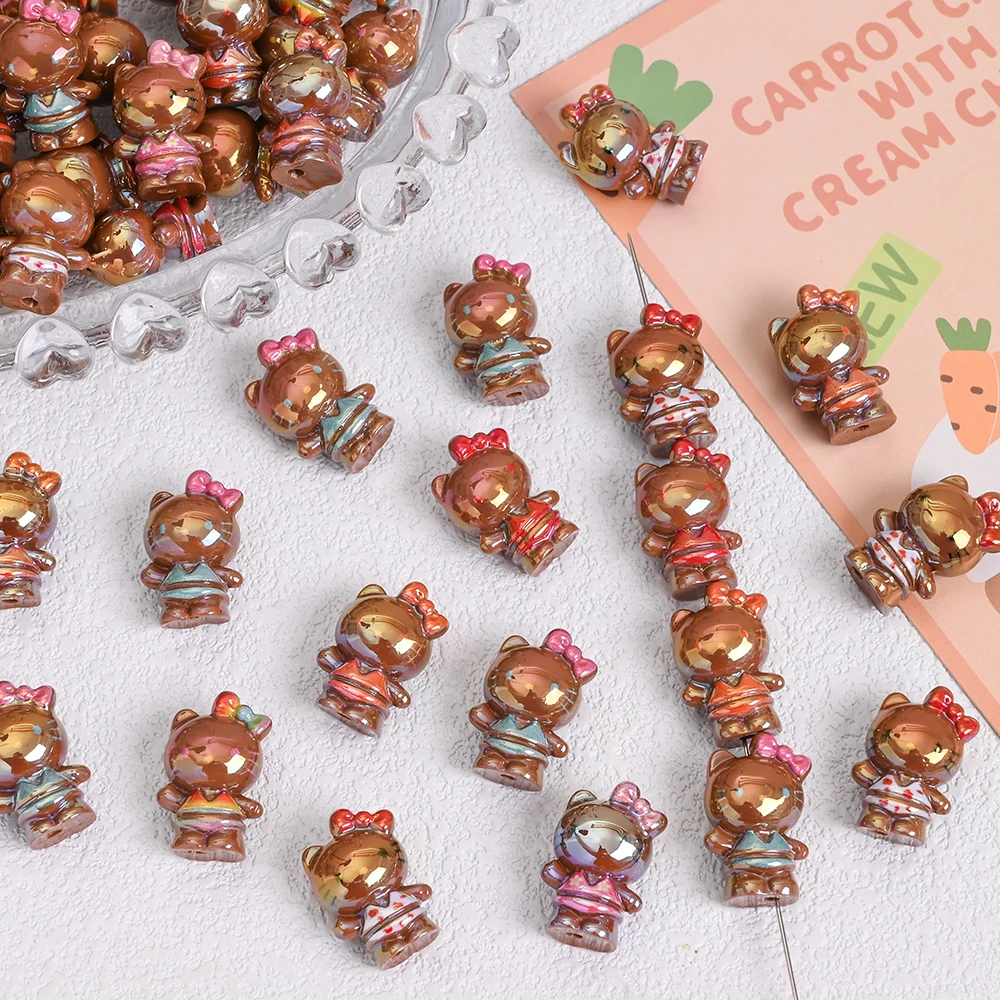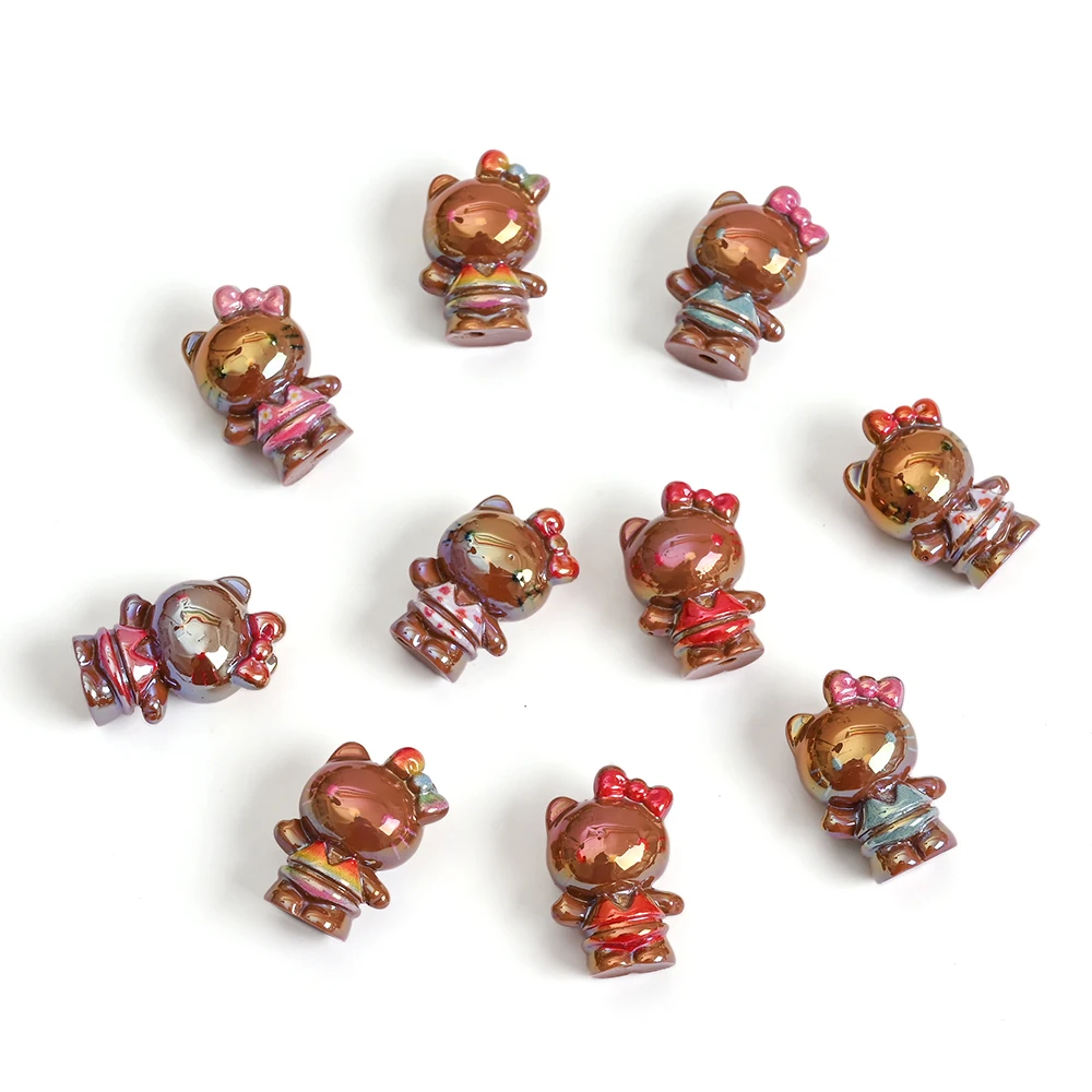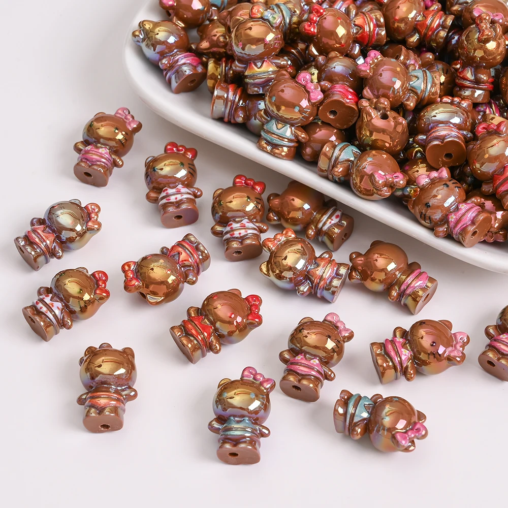 10Pcs Brown Sanrio Hello Kitty Resin Beads Jewelry Loose Interval Bead For DIY Pacifier Chain Teething Necklace Baby Shower Gift