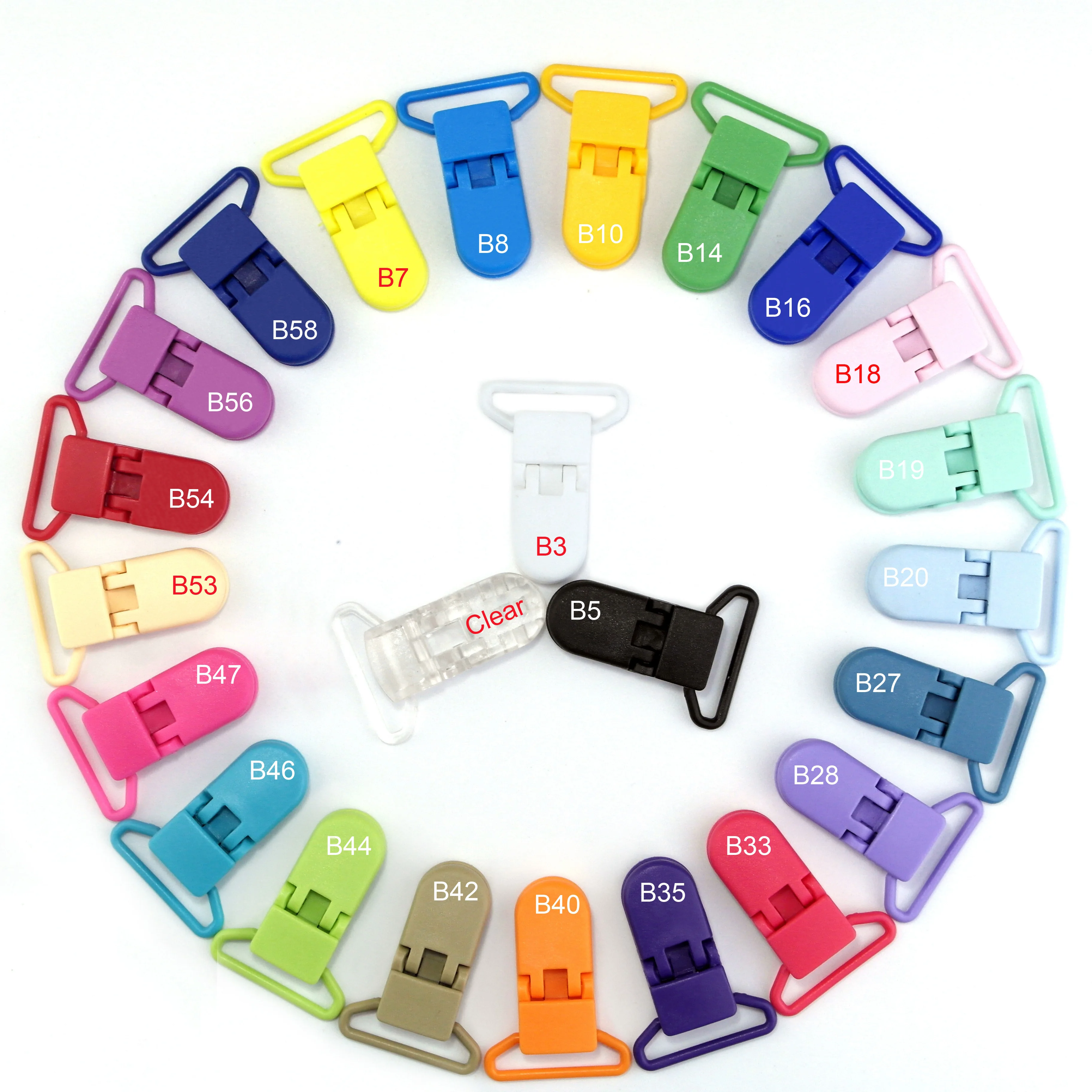 200pcs 25MM Sutoyuen D Shape Baby Plastic Pacifier Clips Clamp Soother Suspender Dummy Toys Chain Holder Clip