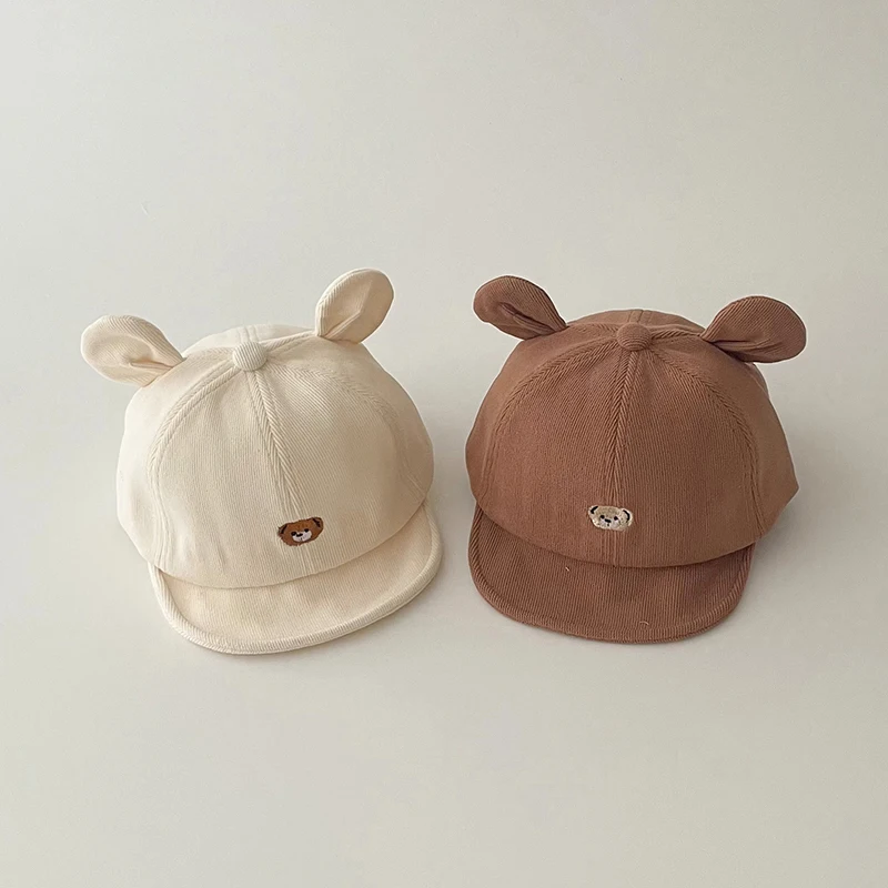 Cartoon Bear Ear Baby Duck Tongue Cap Solid Cotton Kids Soft Brim Baseball Cap Infant Boy Girl Sun Visors Children Peaked Hat 모자