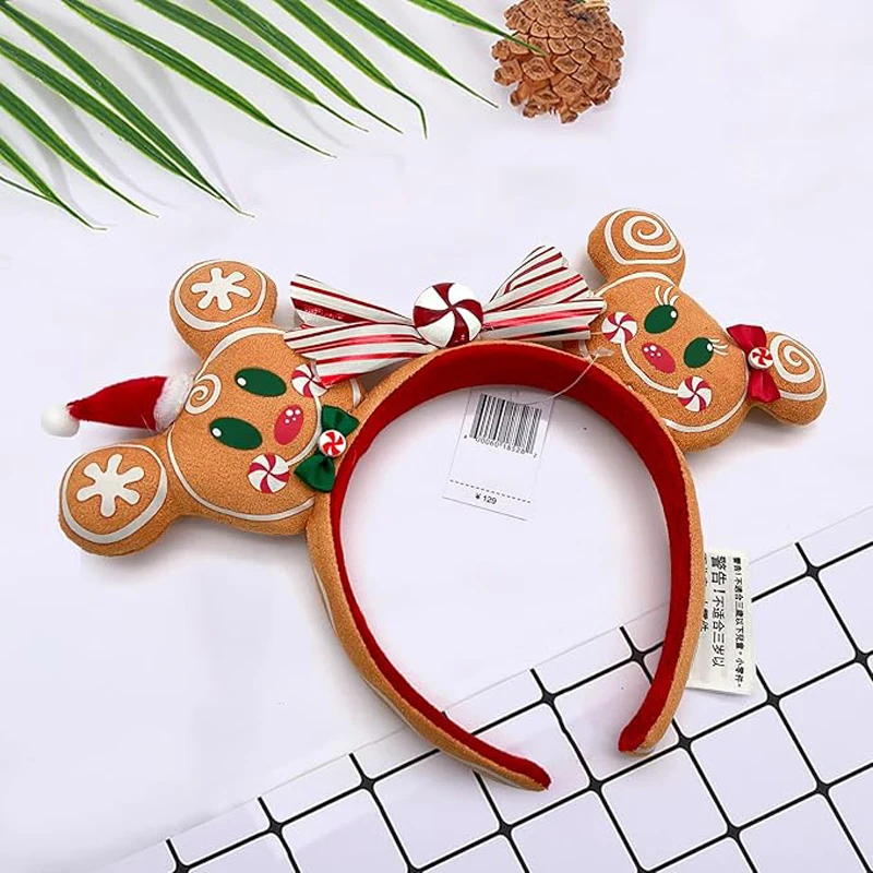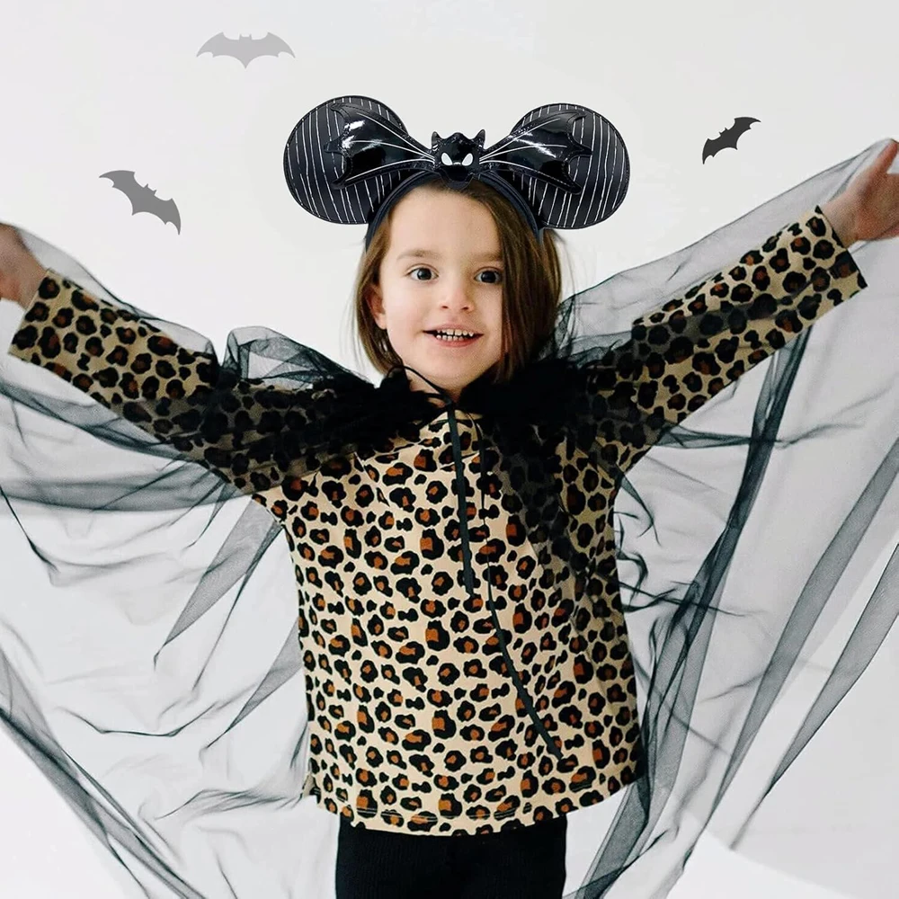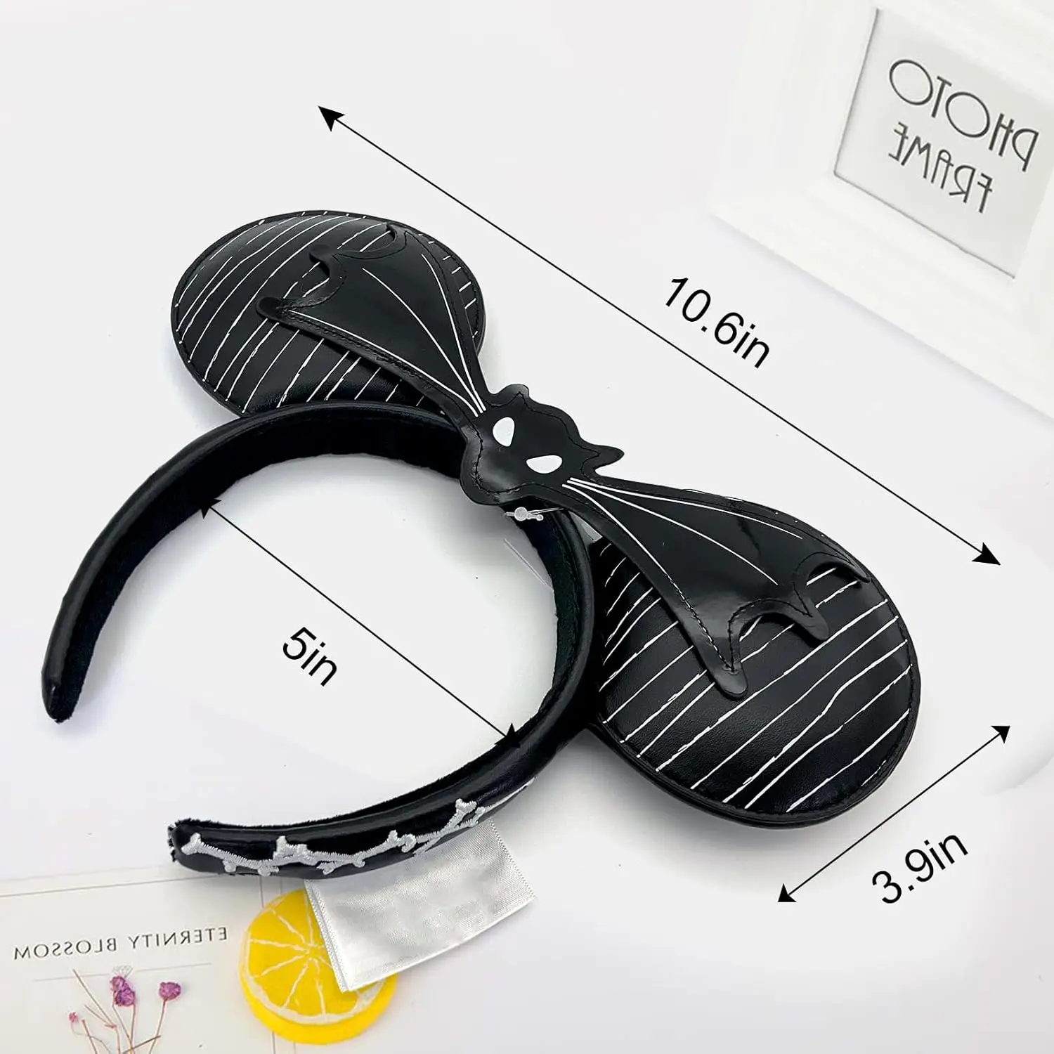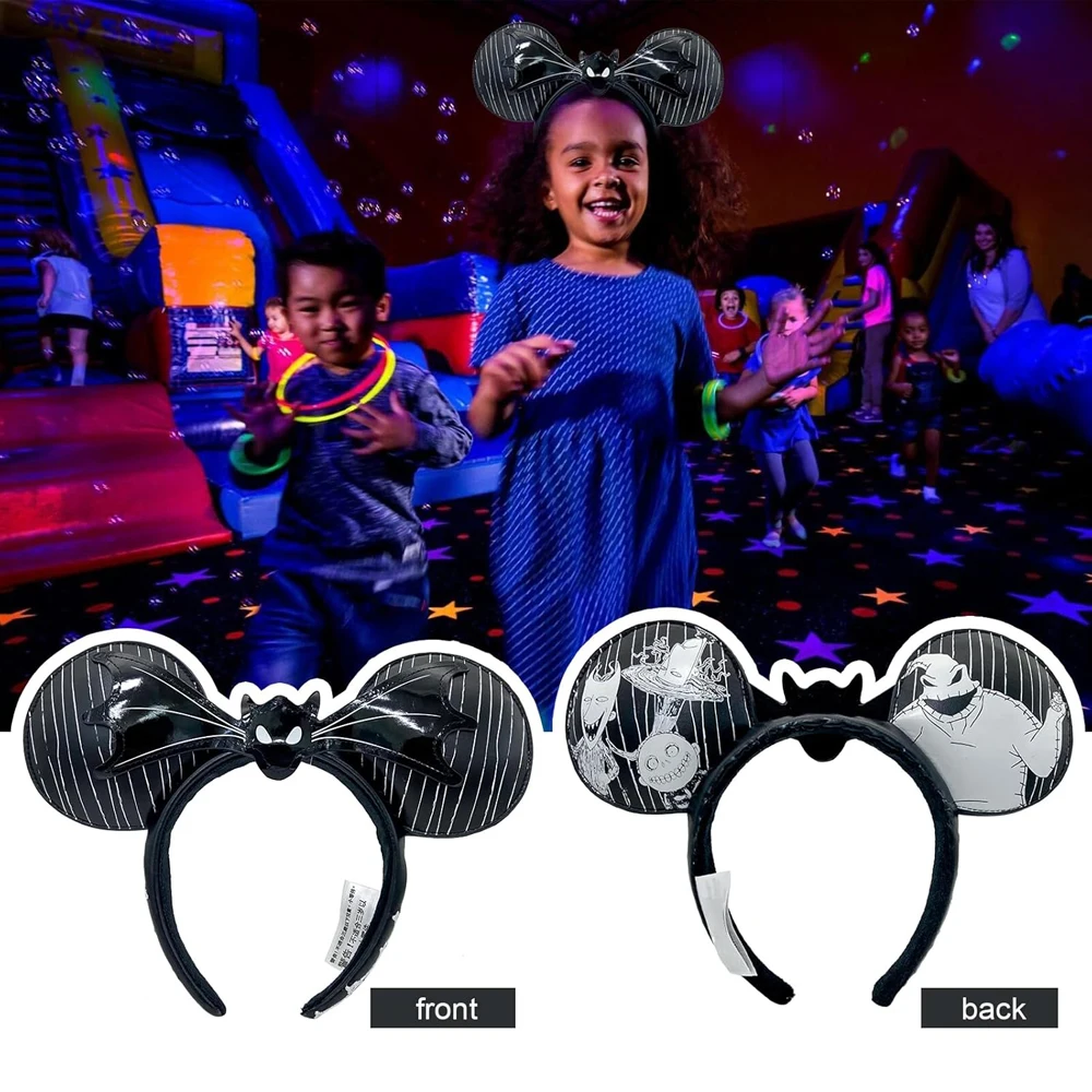 Disney Mickey Headband PU Black Bat Ears Headband Christmas Gingerbread Cosplay Hairband Disneyland Letter Headband Gift