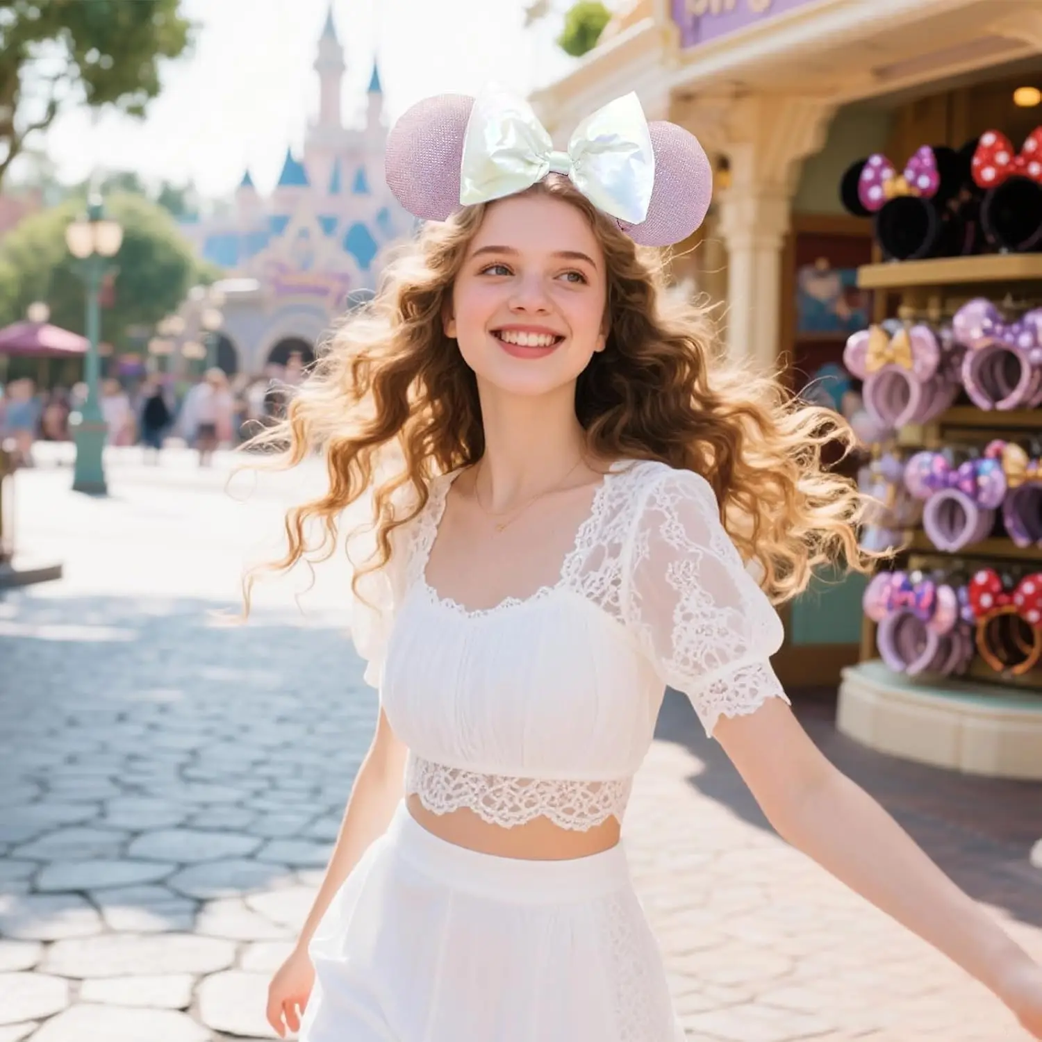 Disney Minnie Mouse Ear Headbands Pink White Bow Hairbands Holiday Birthday Party Princess Decoration Cosplay Costume for Women