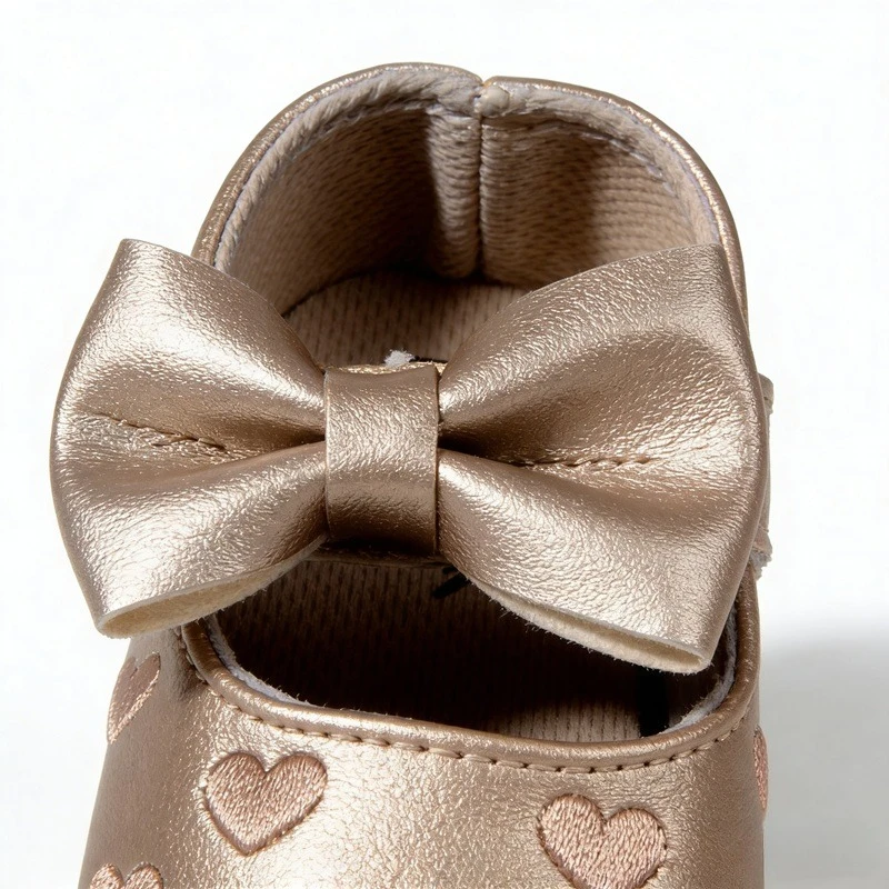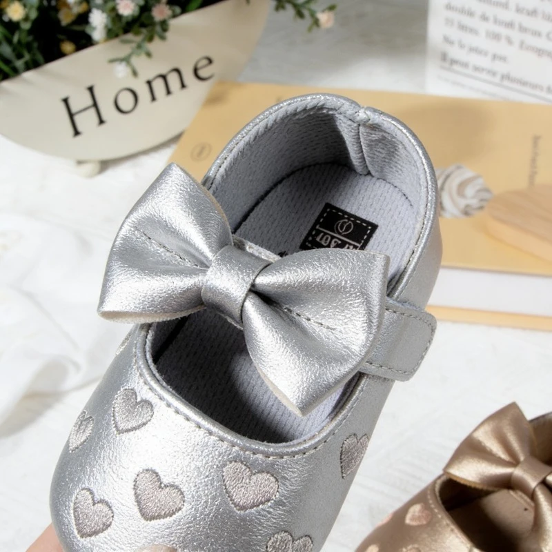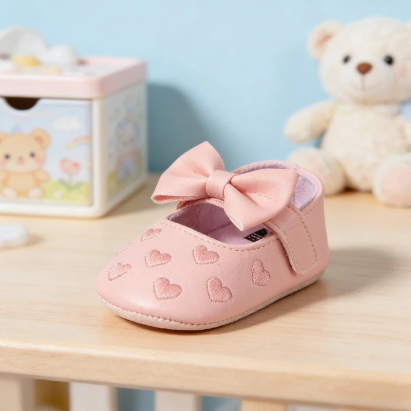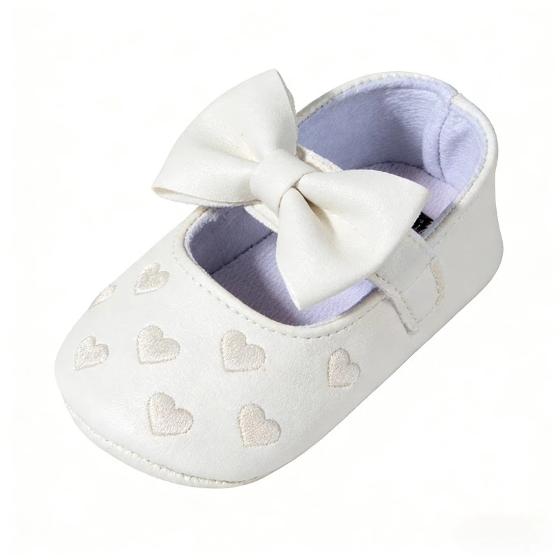 Baby Girls Indoor First Walker Shoes 0-18 Months Soft Cotton Sole Non-Slip Bowknot Embroidery Hook & Loop Booties