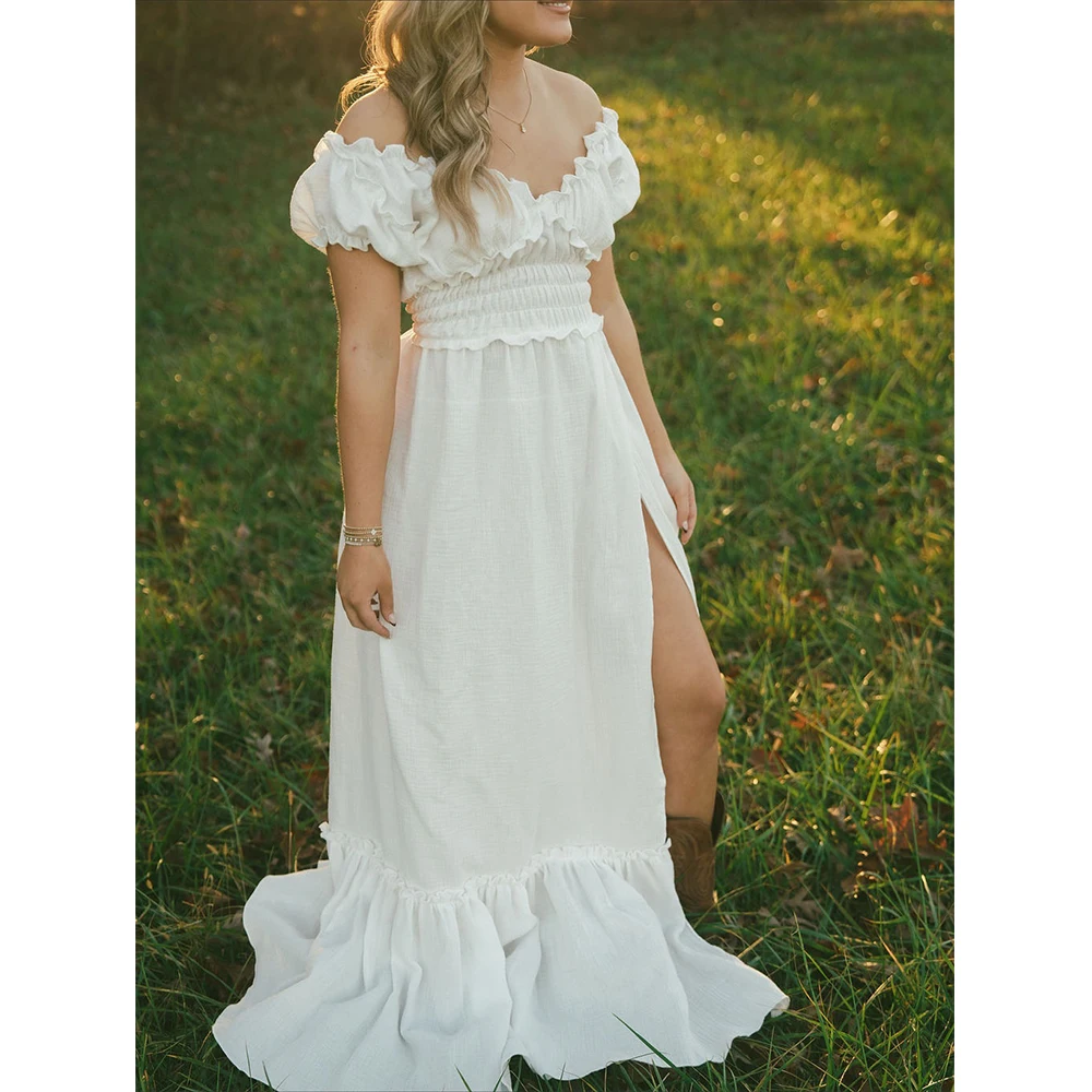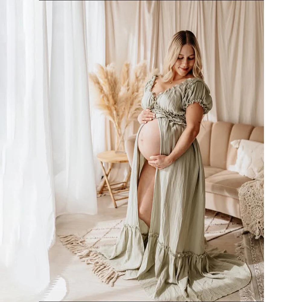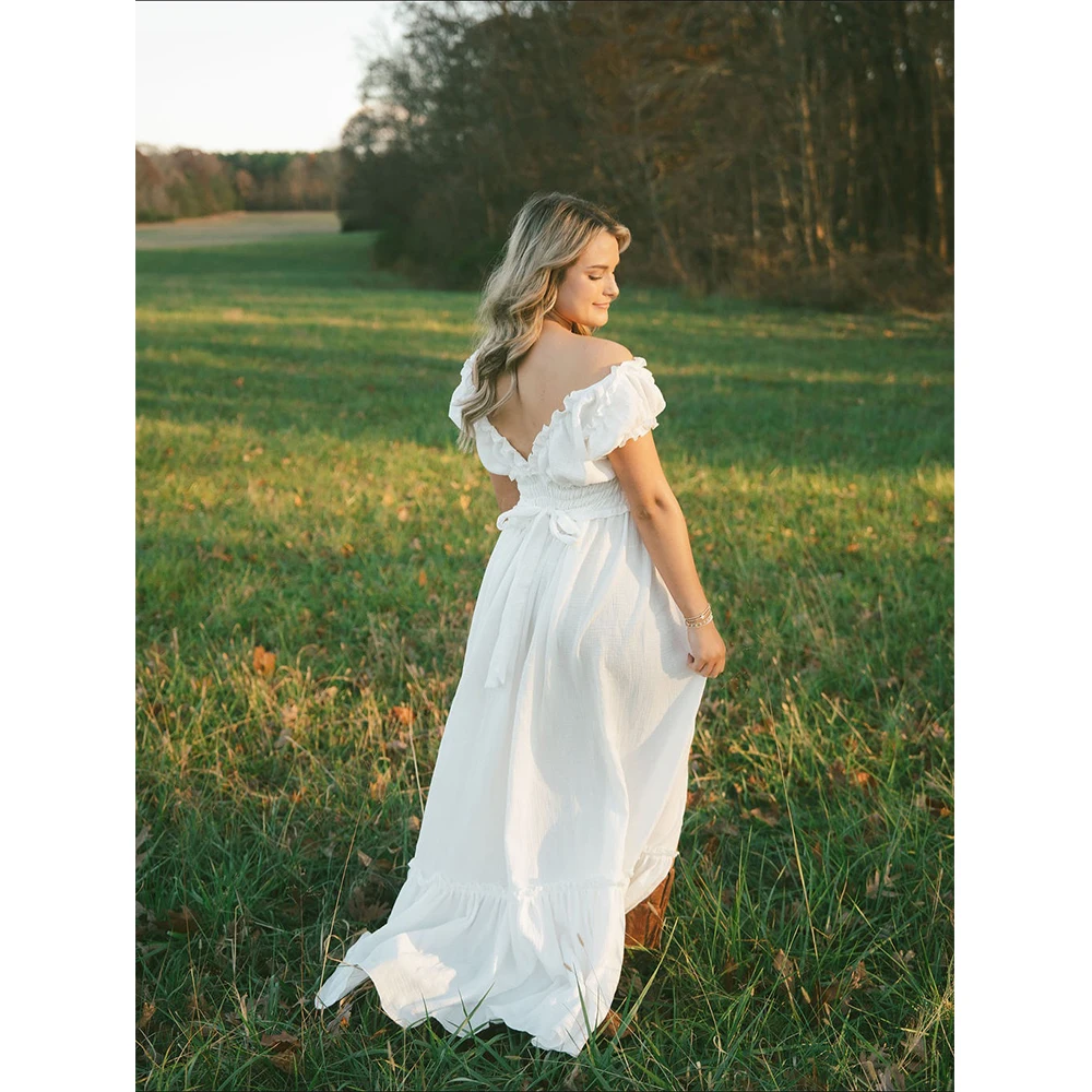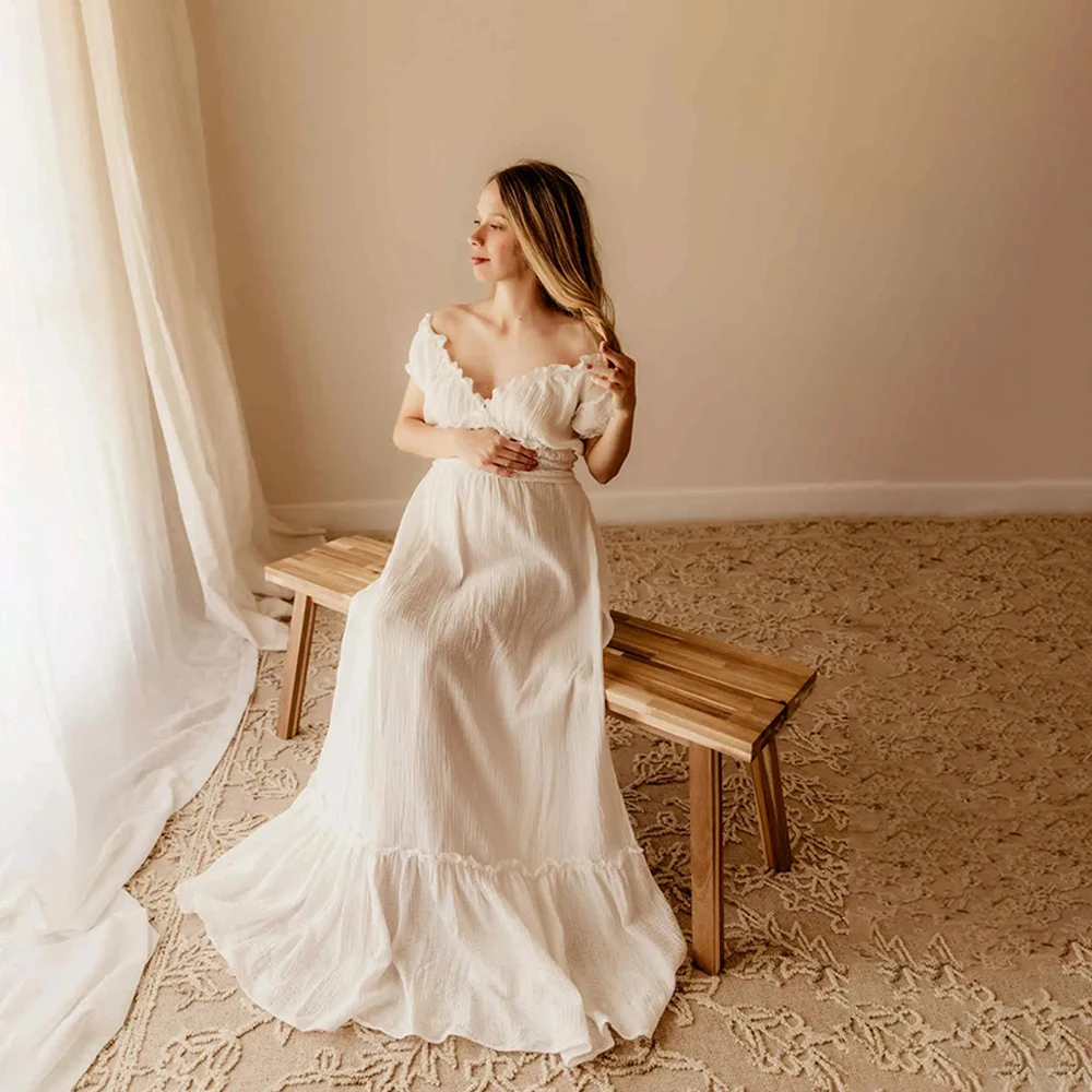 Bohemian Maternity Photo Dress Off Shoulder Ruffled Maxi Gown Pregnancy Photoshoot Baby Shower Elegant Maternity Dress
