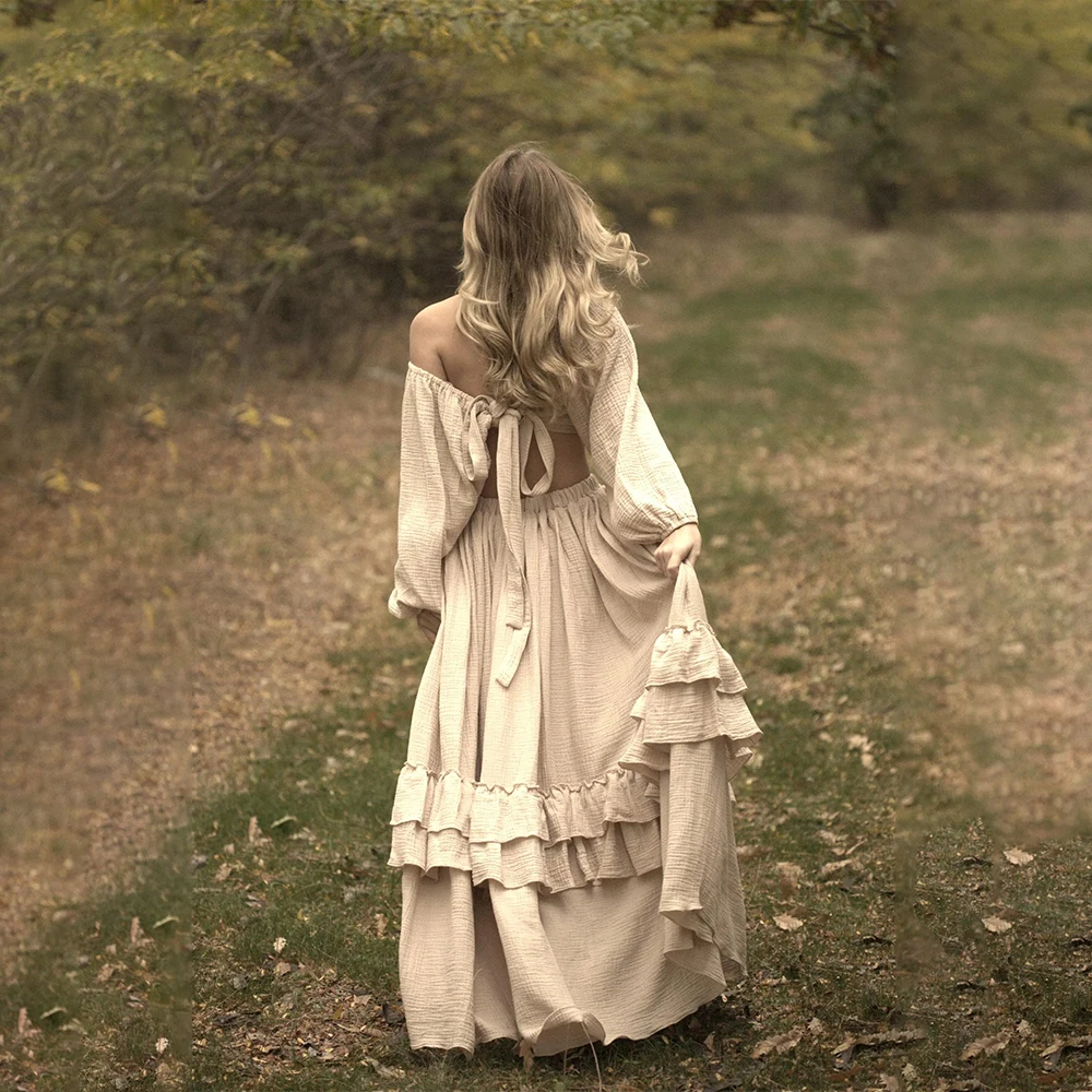 Boho Maternity Photoshoot Dress Maxi Beach Photography Dresses For Outdoor Pregnancy Shooting Clothes Baby Shower Maternity Gown