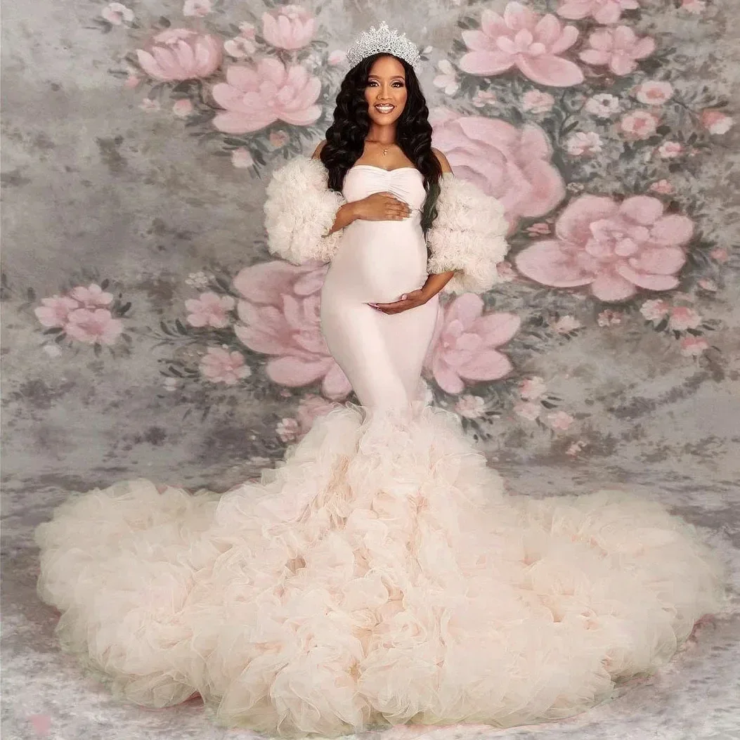 Maternity Pink Mermaid Dresses Photoshoot Photography Dress baby shower Photographie de vêtements de maternité vestido maternid