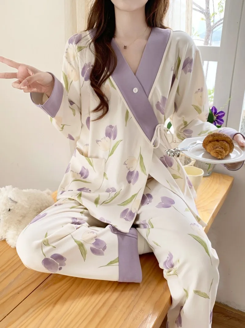 Monthly Clothing Spring and Autumn Postpartum Maternity Pajamas Summer Thin Section Breastfeeding Maternity Maternity Home Wear