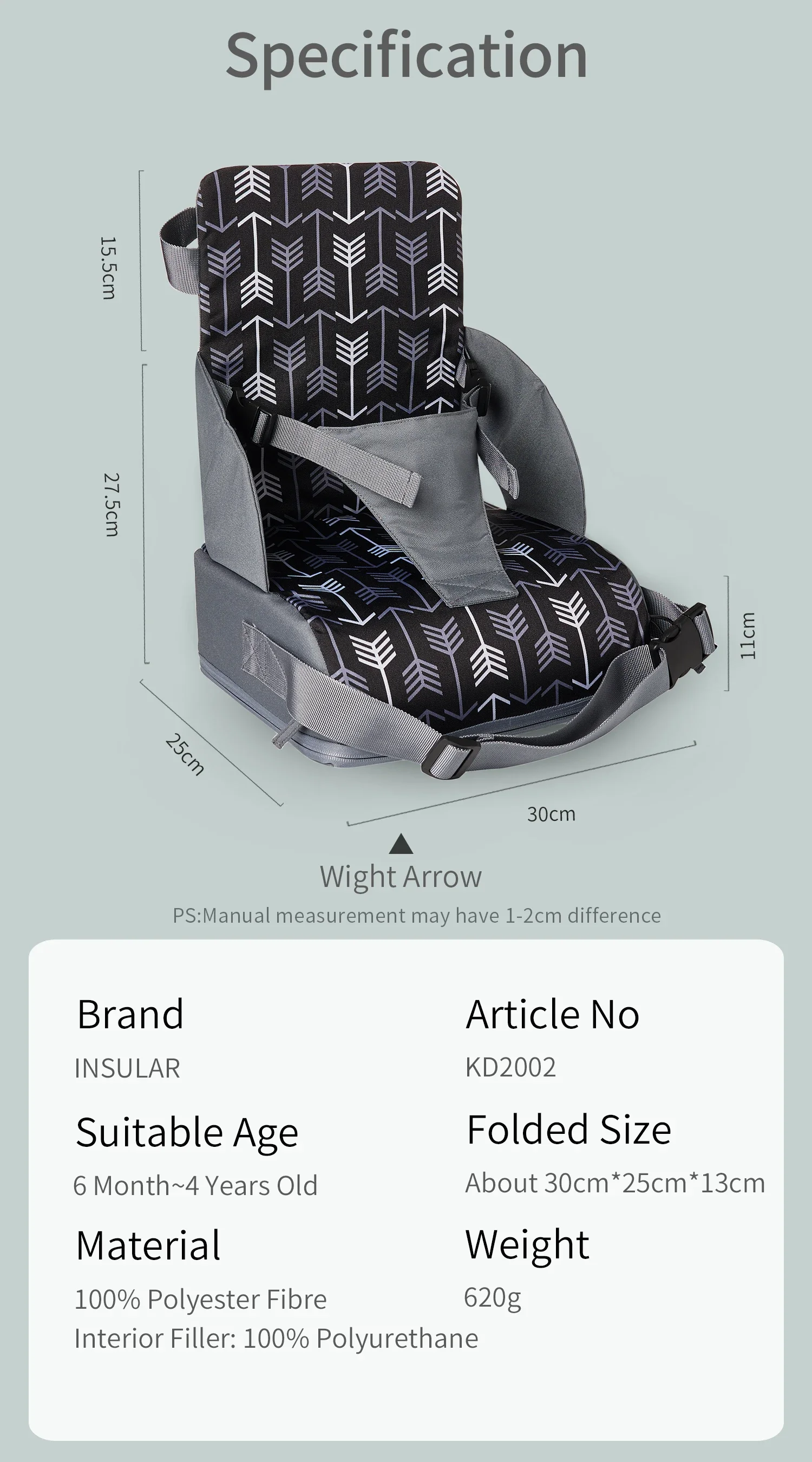 Portable Anti slip Folding Three Point Children's Seat High Cushion Baby Dining Chair High Cushion Children's Travel Supplies