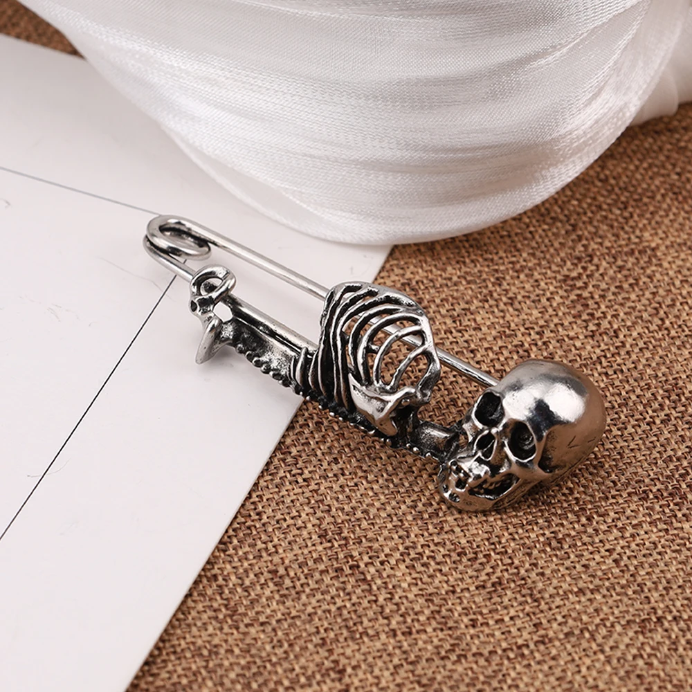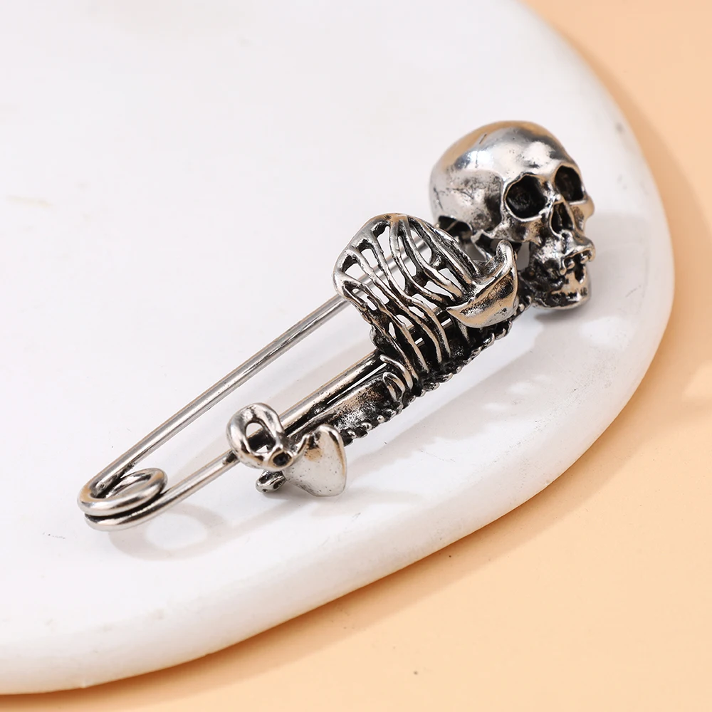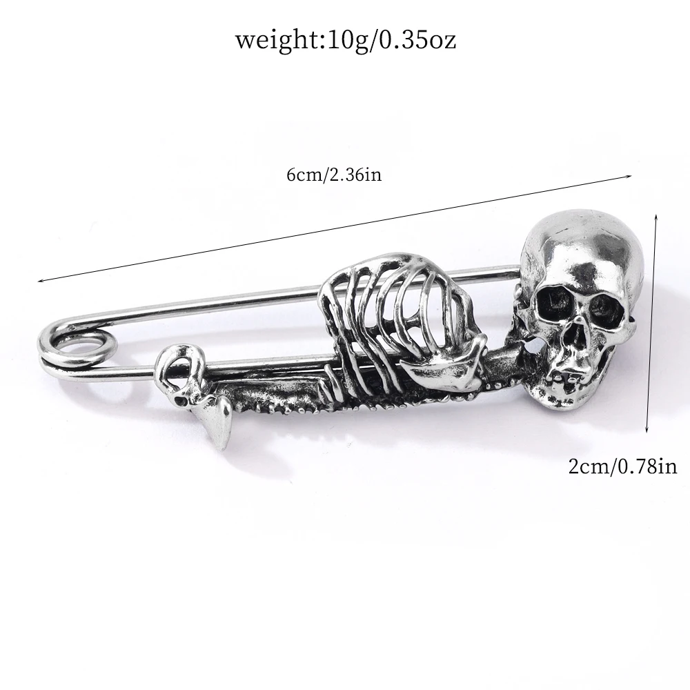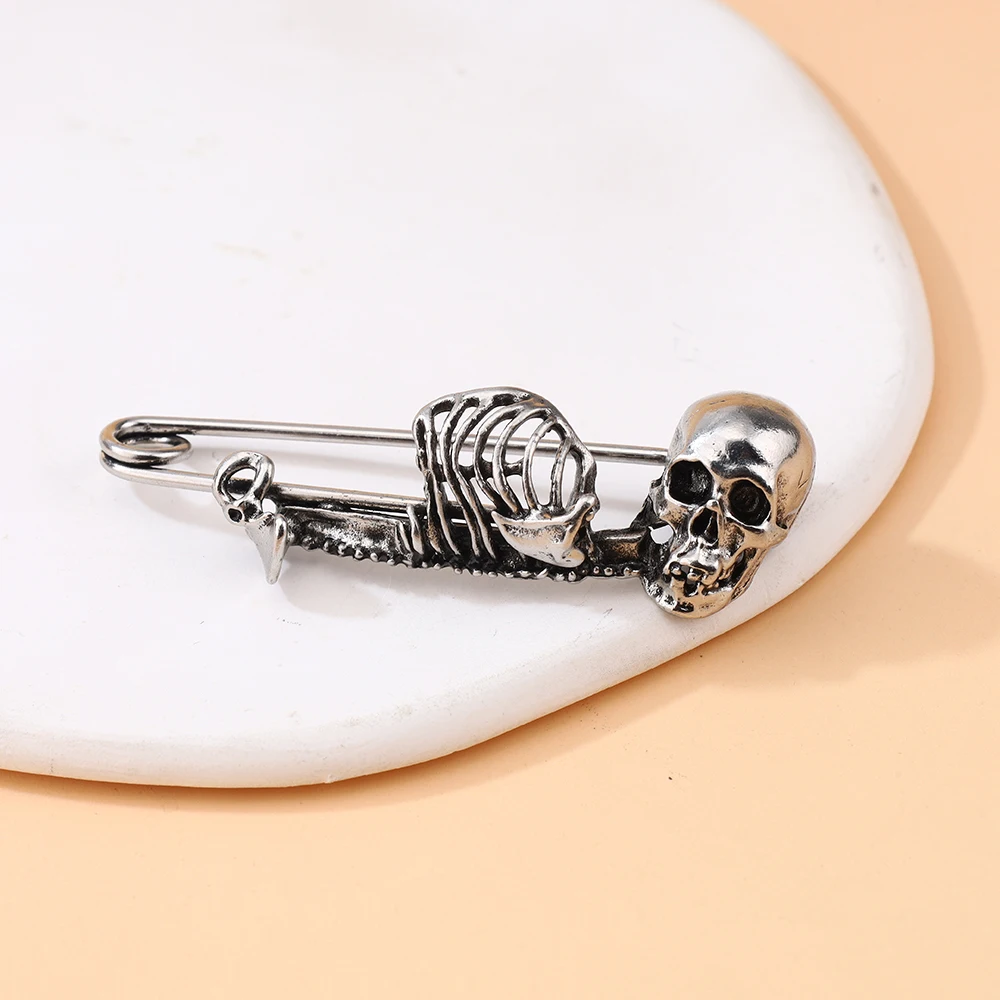 Vintage Halloween Skeleton Brooch Creative Punk Style Retro Skull Pin Clothing Accessories Spooky Gothic Skull Badge Lapel Pins