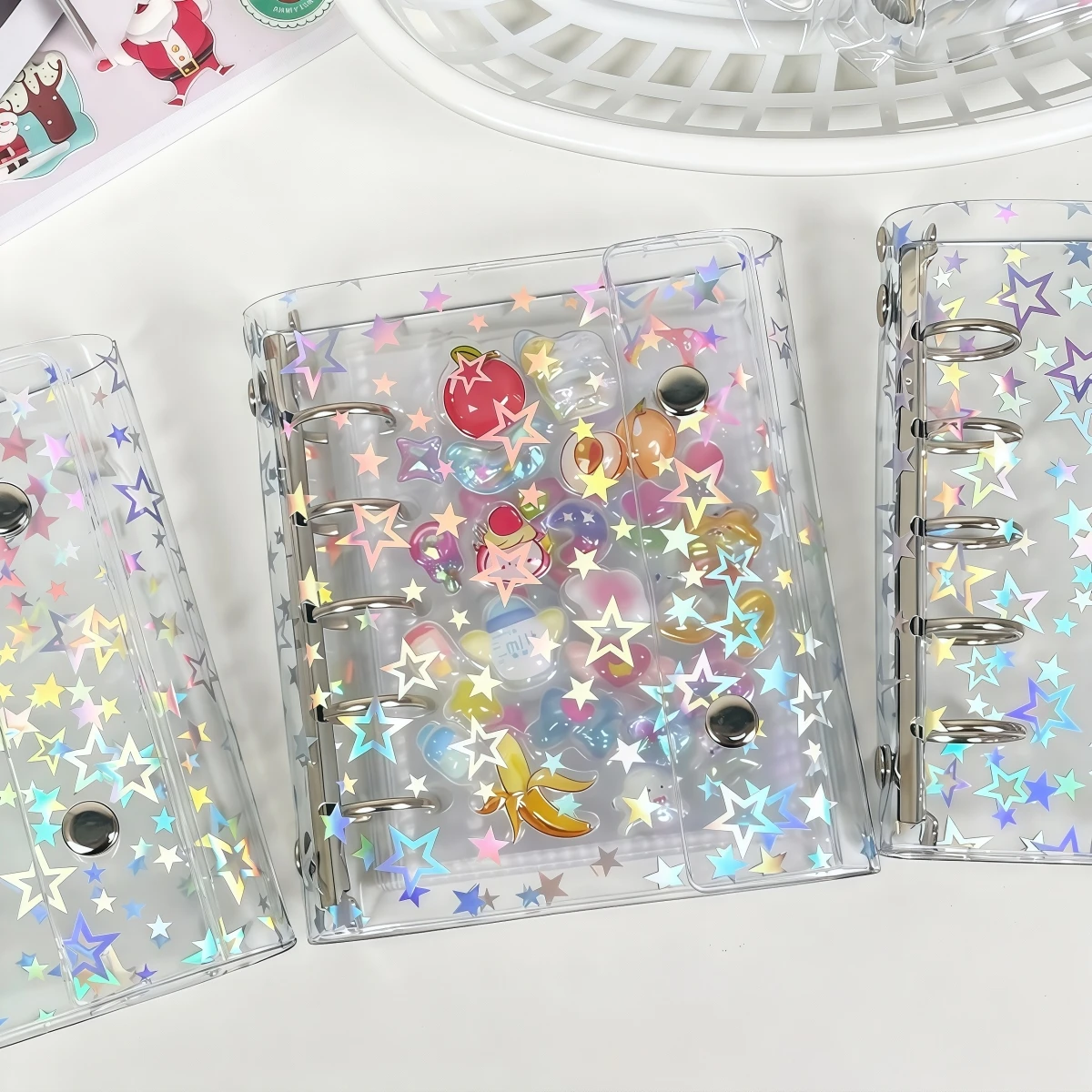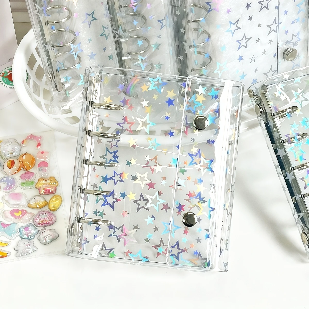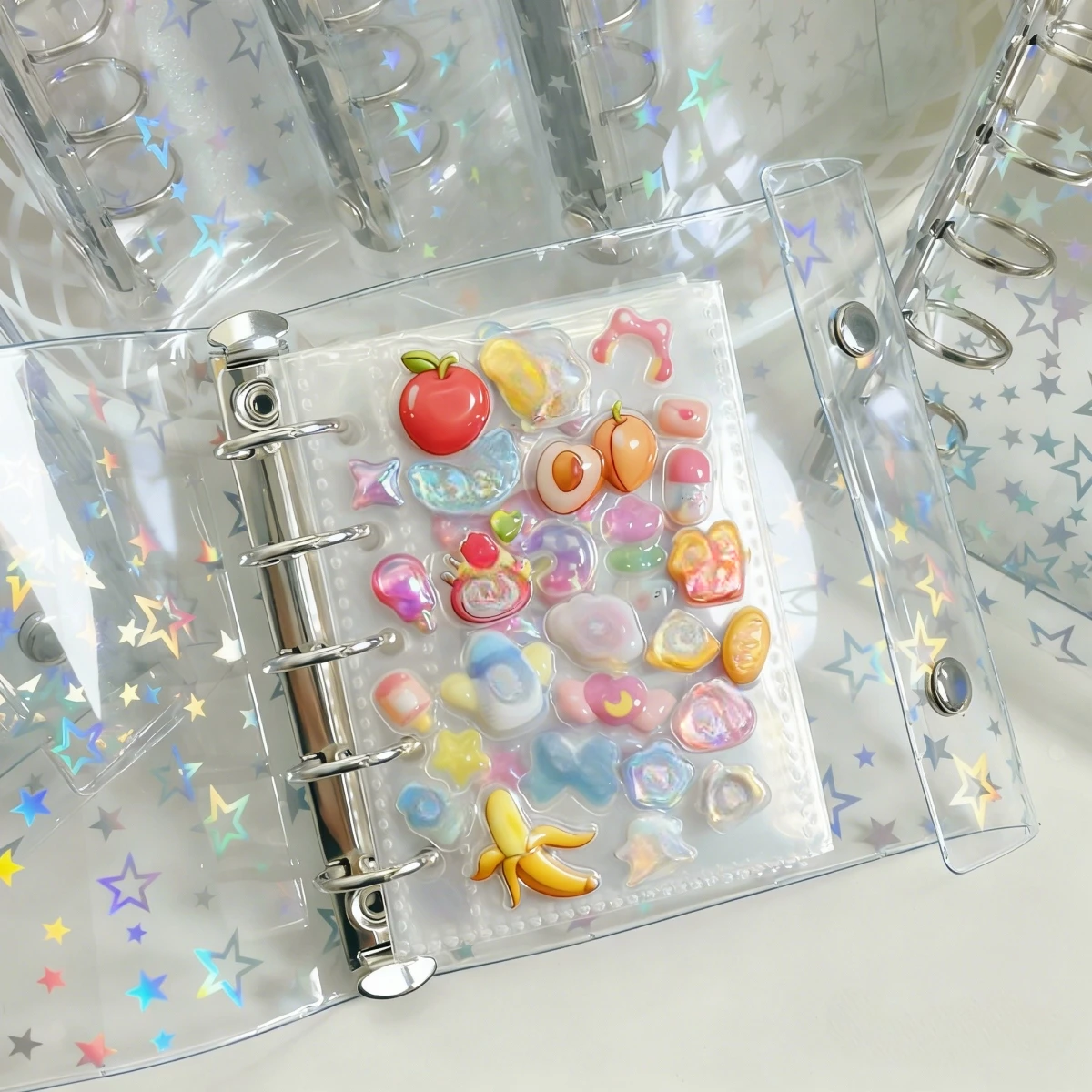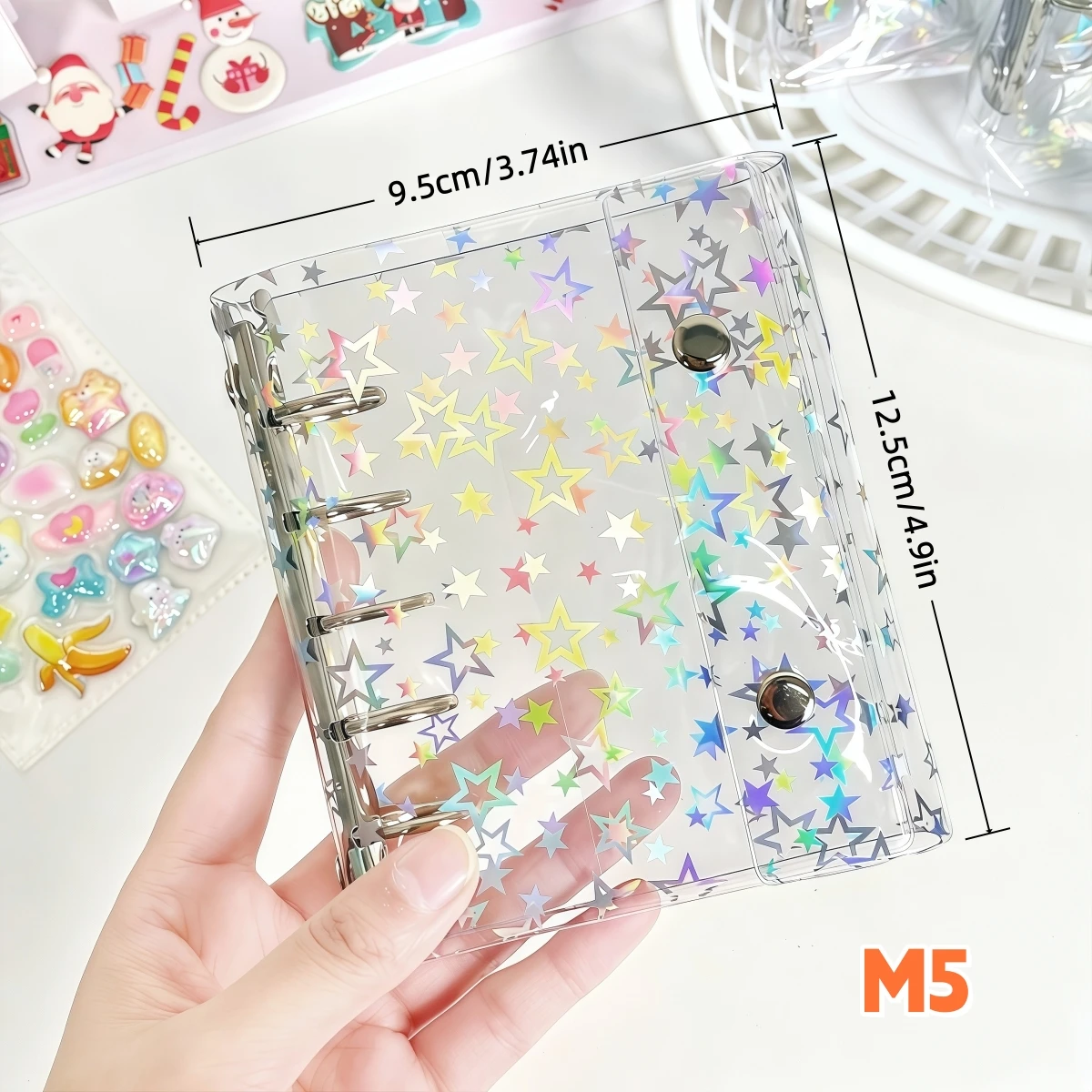 1Pc M5 Rainbow Star Planner, Colorful Star Binder, 3D Embossed Bubble Sticker Book, Sticker Book, Pp Transparent Inner Page Refill, for Scrapbooking, Sticker Storage, Budget Planner, Etc., Student Office Supplies