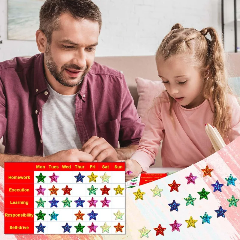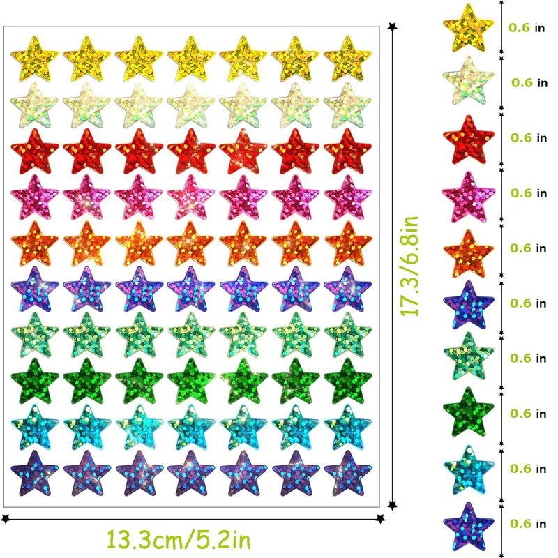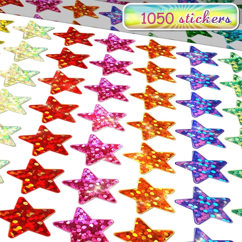 350/1050Pcs Colorful Holographic Foil Star Reward Stickers Student Planner Behavior Awards School Classroom Teacher Supplies