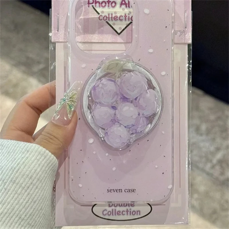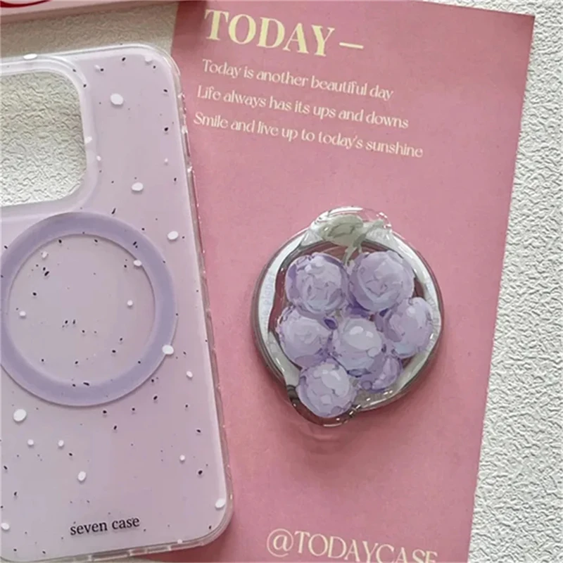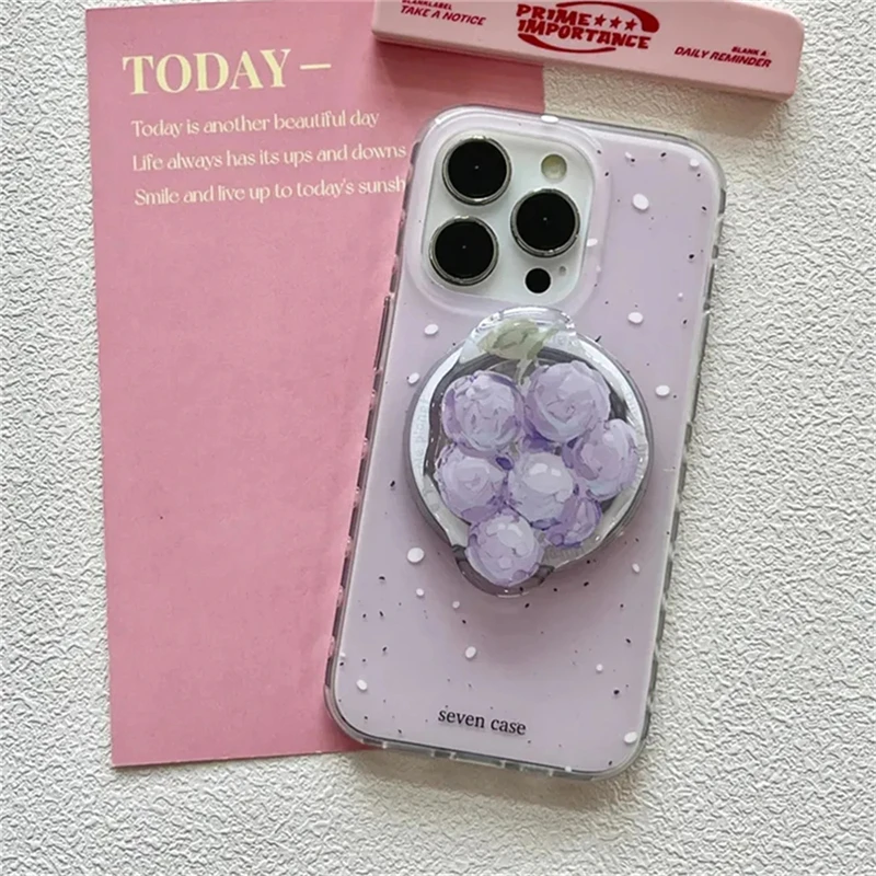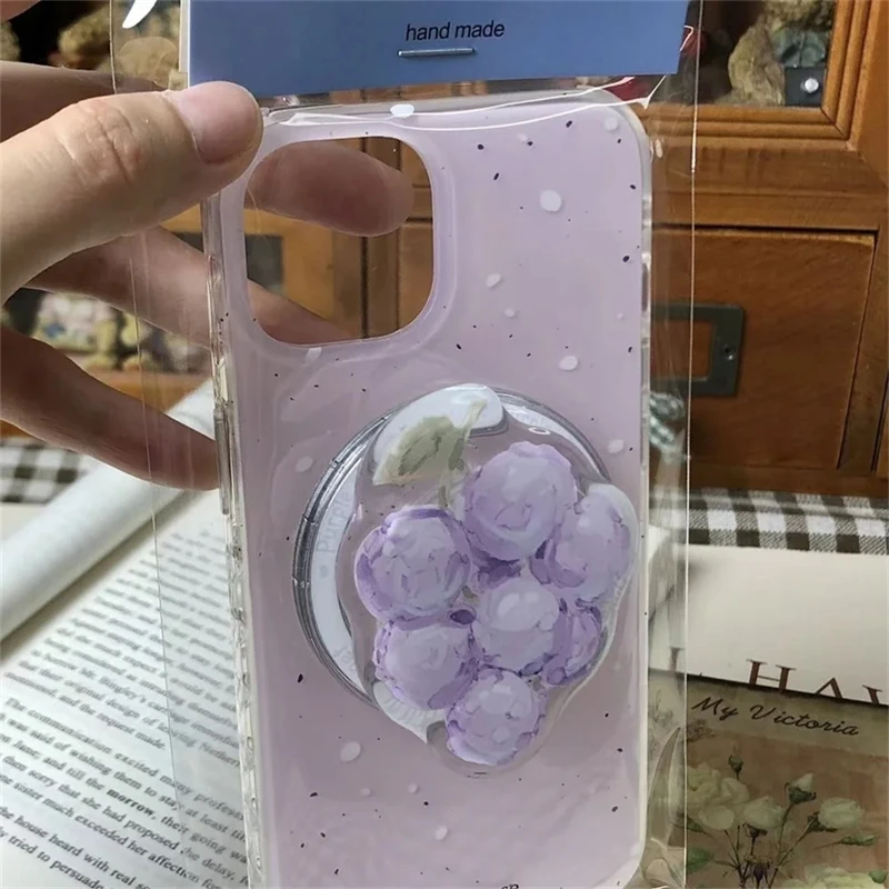 Korea Cute Purple Grape For Magsafe Magnetic Phone Griptok Grip Tok Stand For iPhone Foldable Wireless Charging Case Holder Ring