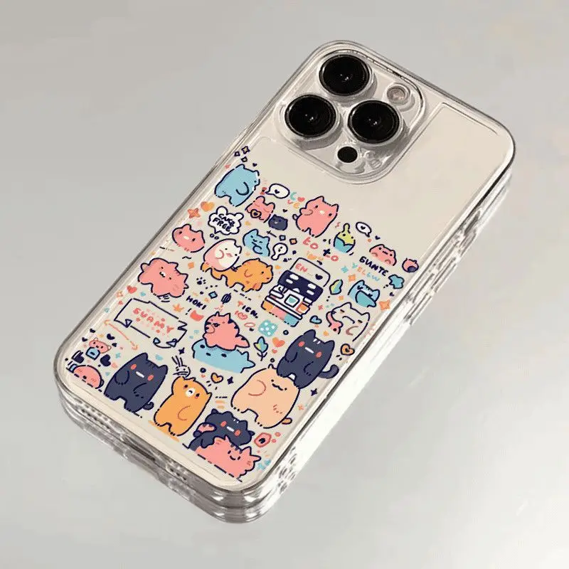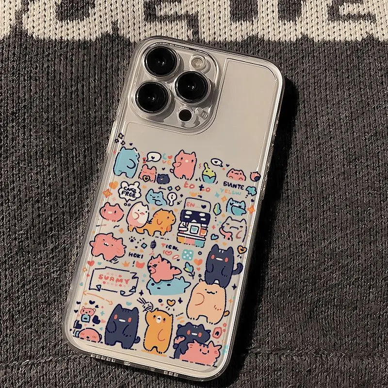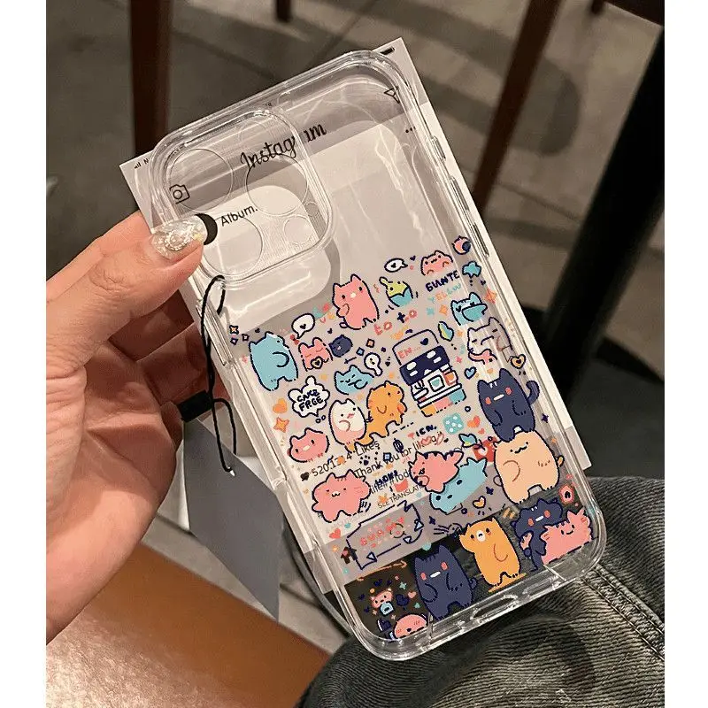 Cartoon Animal Colorful Cats Clear Phone Case For iPhone 16 15 11 12 14 13 Pro Max Mini X XSM XR 7 8 Plus SE4 16e Cute Covers