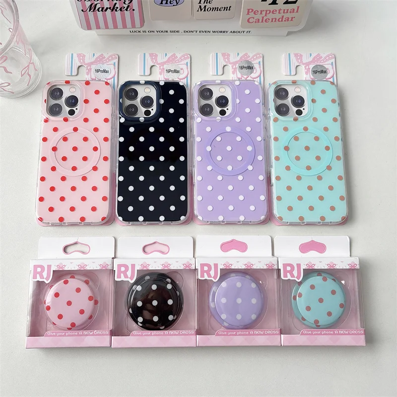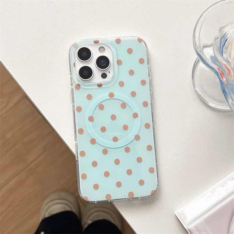 Colorful Polka Dot Magnetic Phone Case For iPhone 16 Pro 15 14 Pro Max Cover Shockproof Magsafe Cases 15 promax 16max Cute Funda