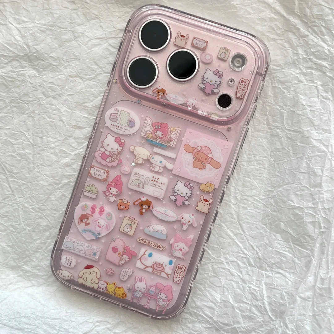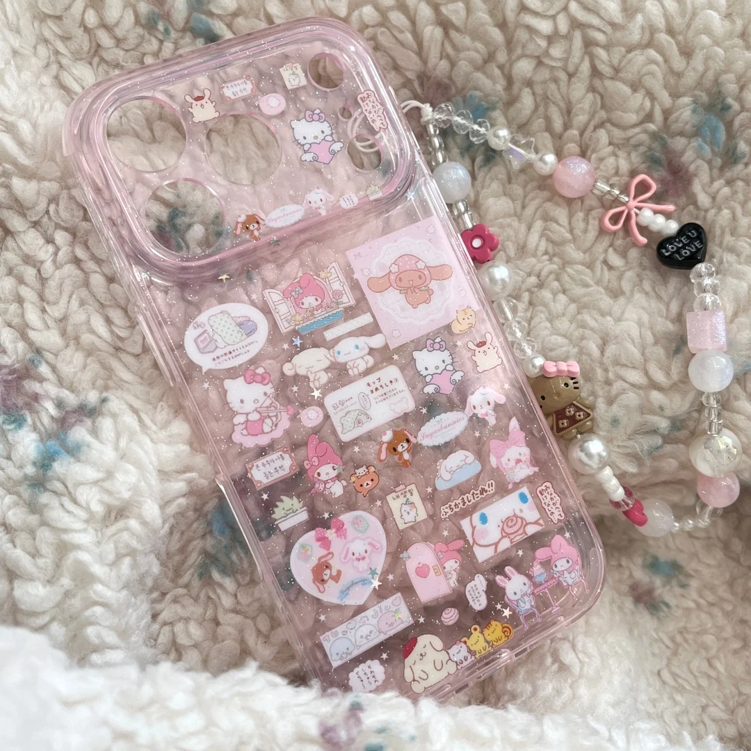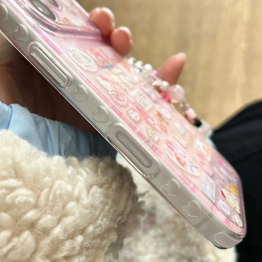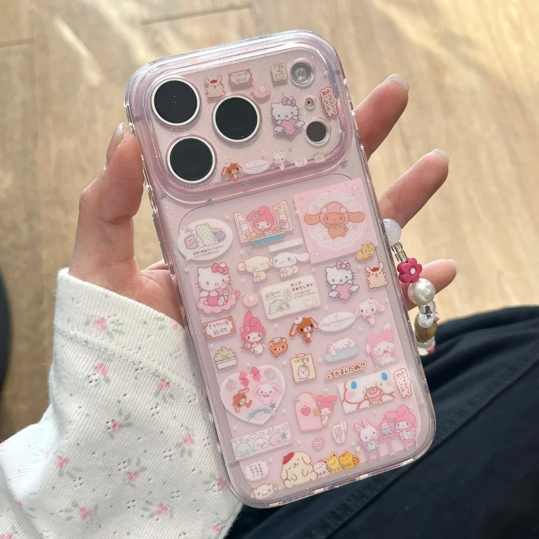 Cute Cartoon Glitter Full Screen Sanrio Hello Kitty Case For iphone 17 16 15 14 Pro Max 17 TPU Shockproof Back Cover With Chain