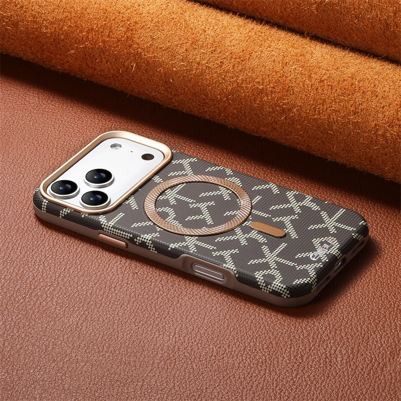 For iPhone 17 16 15 14 13 Pro Max 17air Business Leather Magsafe Phone Case Wireless Charging Alloy Lens Matte Shockproof Cover
