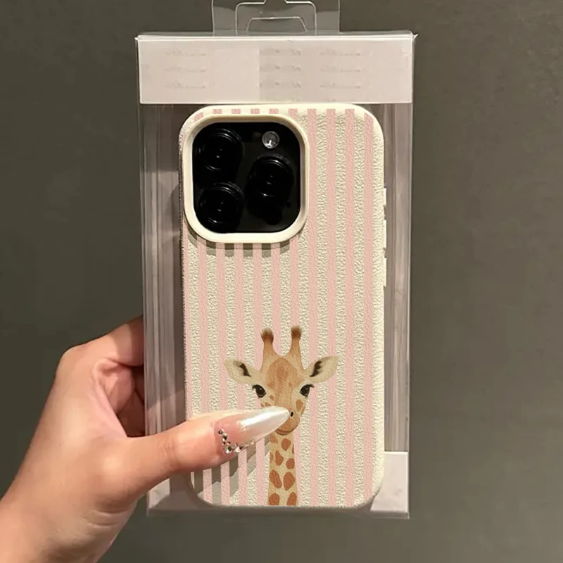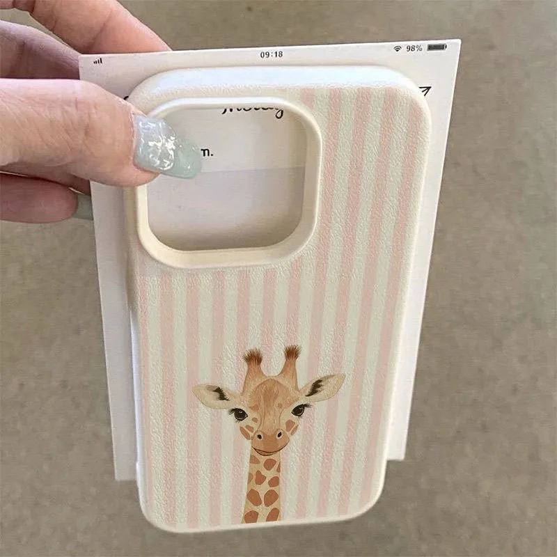 Phone Case For Xiaomi 15 14 13 15T 14T 13T Poco F7 F6 F5 M6 X7 X6 X5 Pro Striped Background Giraffe Illustration Patterns Cover