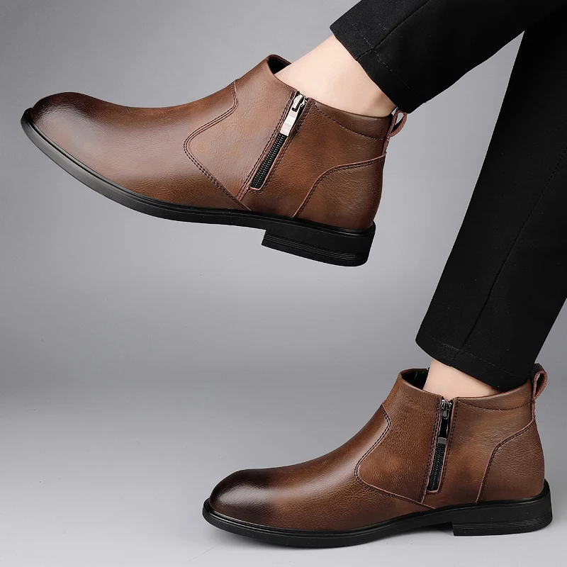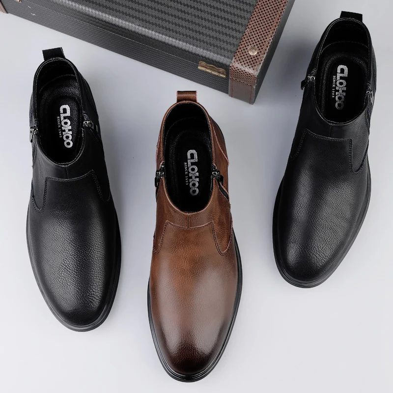 CLOHOO Handmade Men's Boots Business Casual Cowhide High-Top Chelsea Boots Zipper Men's Shoes Leather Ankle Boots