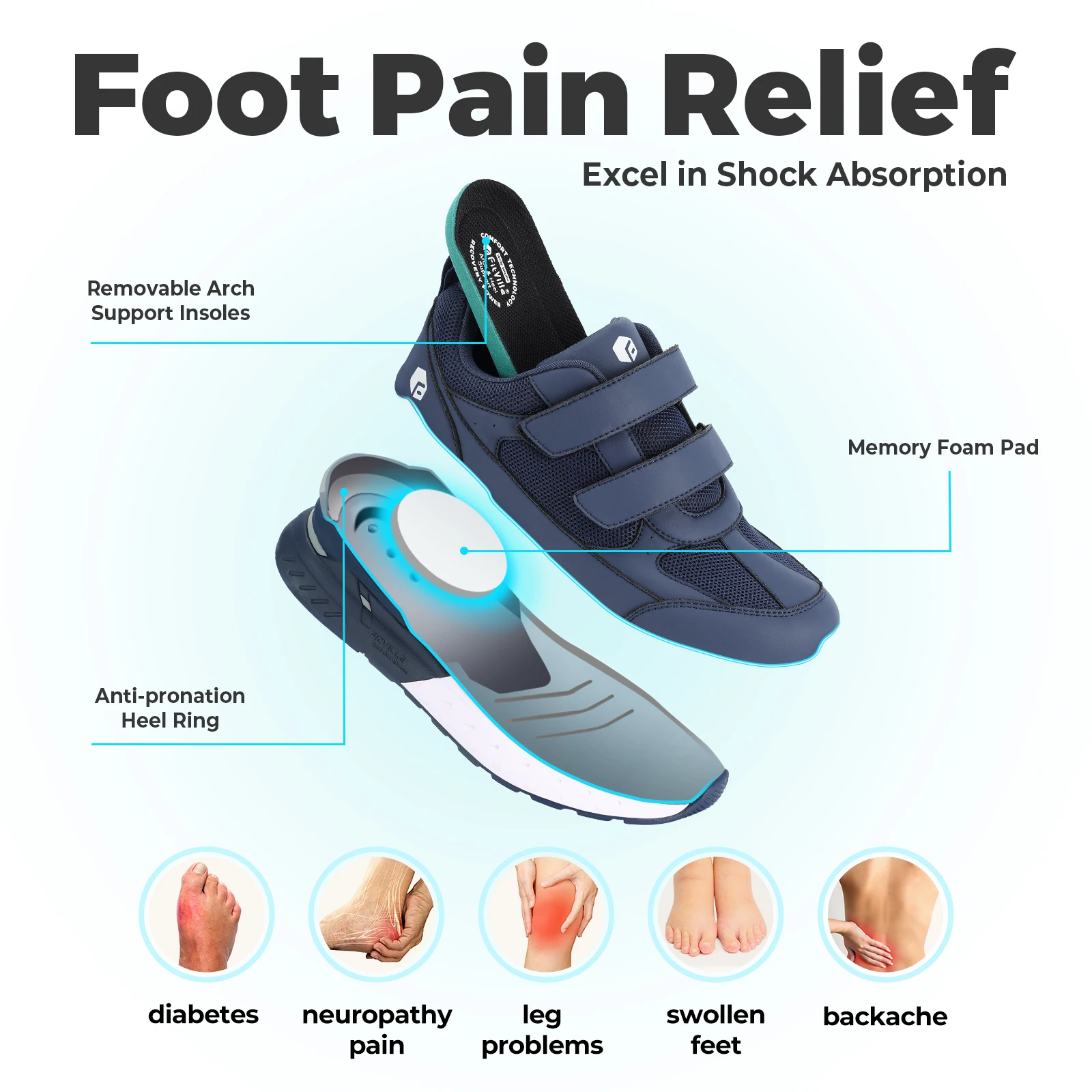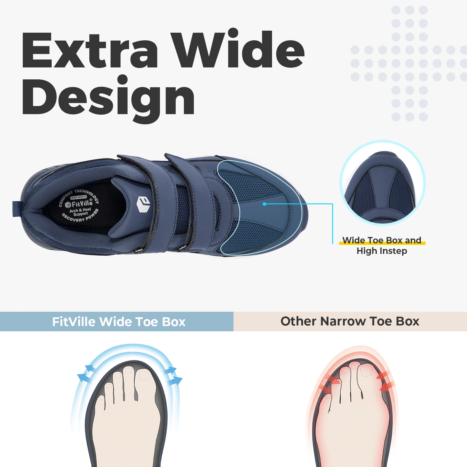 FitVille Diabetic Shoes for Men Extra Wide Width Adjustable Closure Walking Shoes Slip-on Sneakers for Foot Pain Relief Swollen