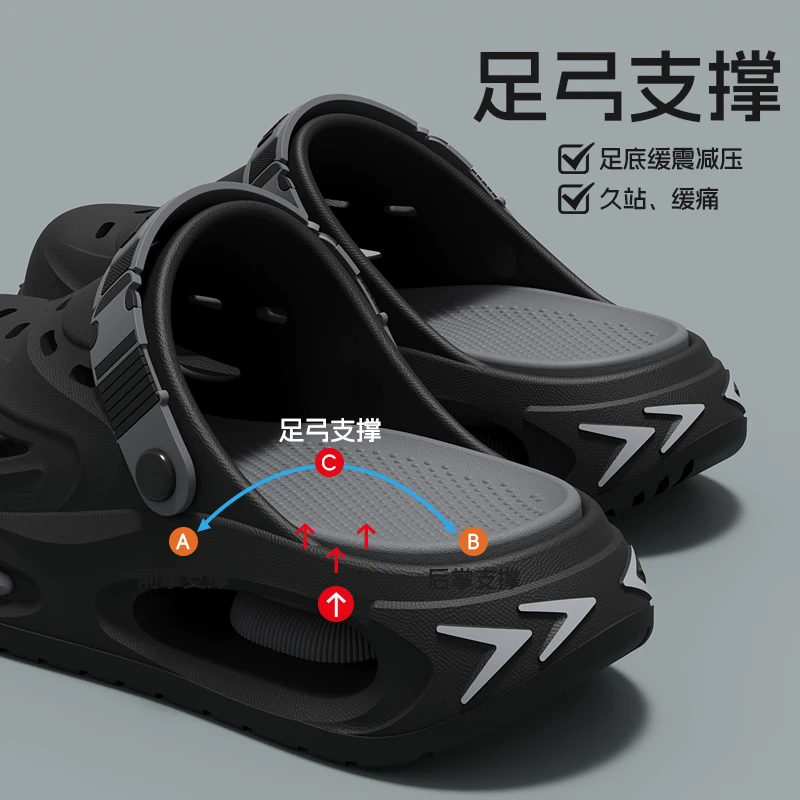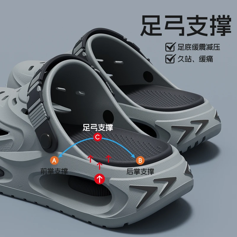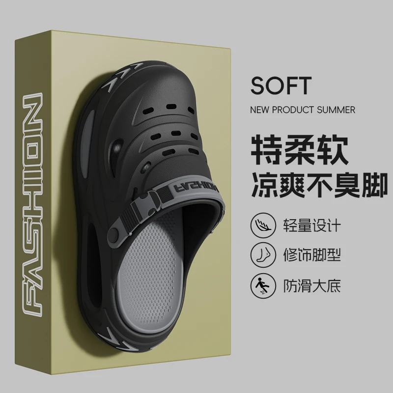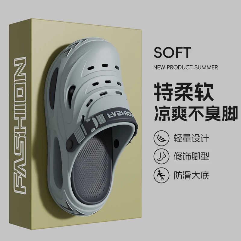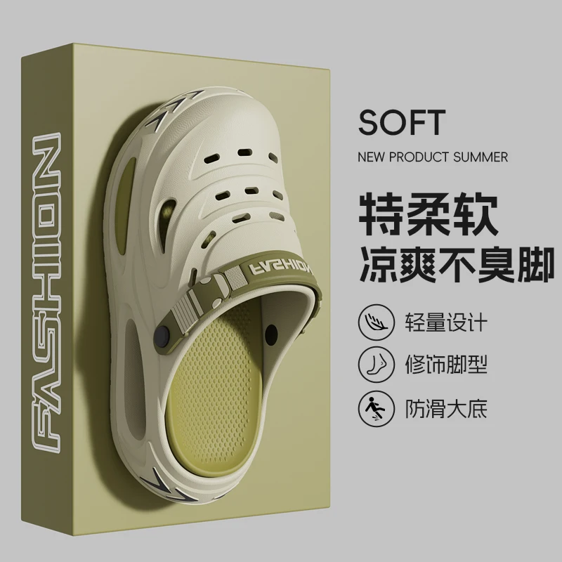Men Hollow Slippers Men Summer Outer Wear New Trendy Thick-Soled Wear-Resistant, Non-Slip Non-Stinky Feet elastic laces slippers