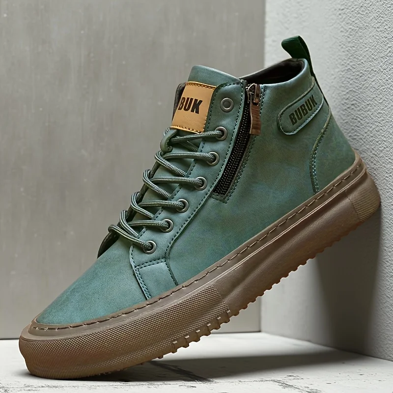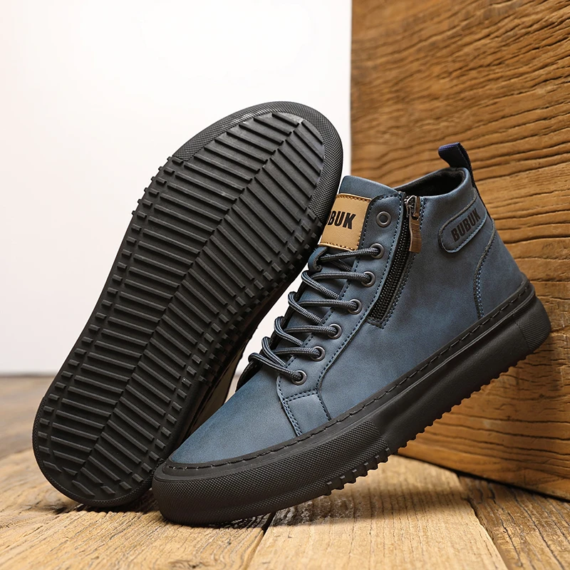 They feature lace-up closure with a side zipper fashion element for easy on and off, mid-top ankle height.