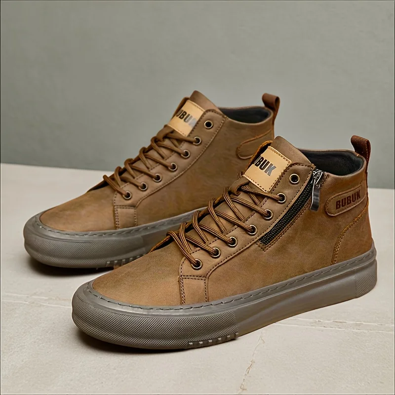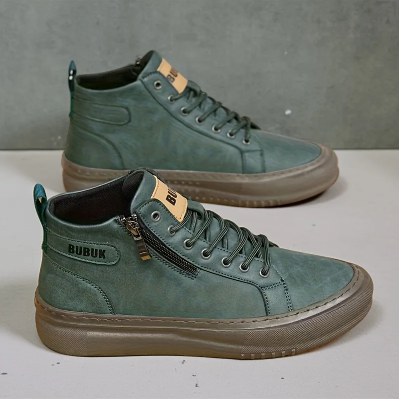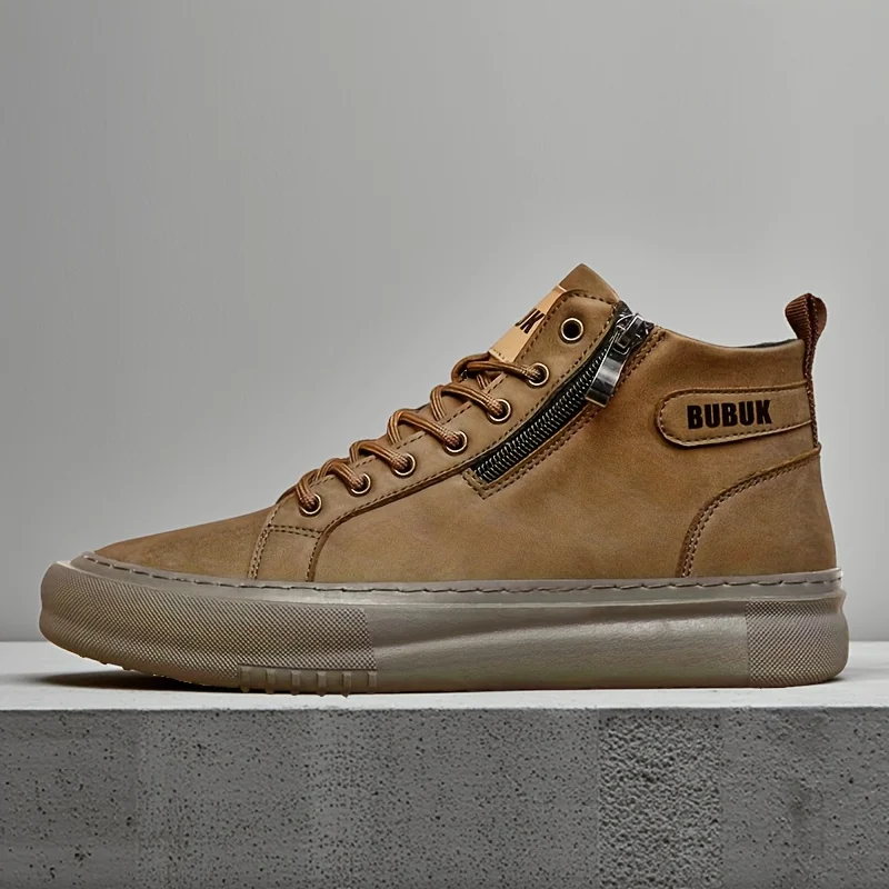 New Men's Business Casual Shoes, Mid-Top, Side Zipper, Lightweight, Suitable for Outdoor Use, Thick-Soled, Fashionable, Trendy, Retro Style Men's Boots